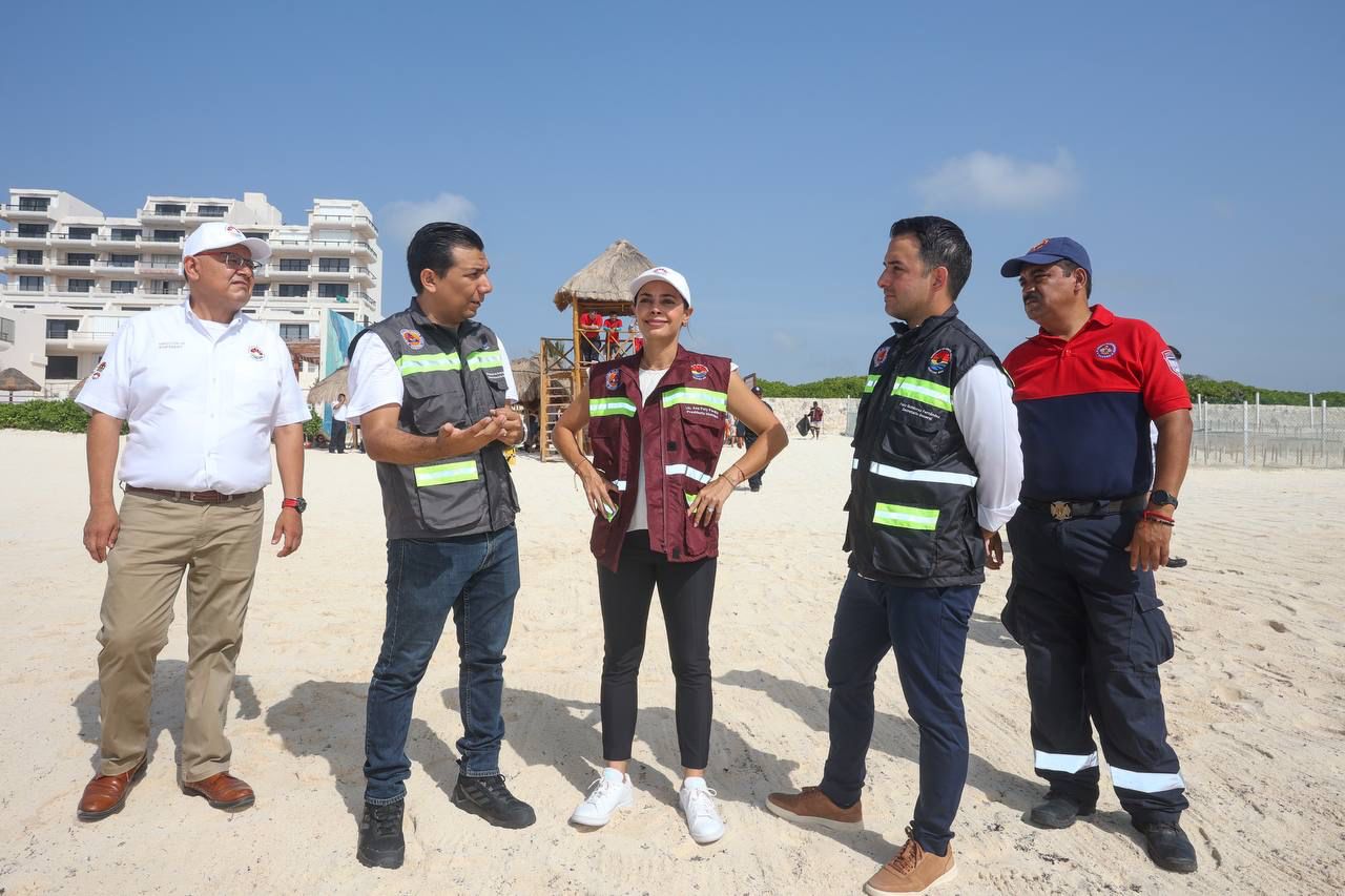 Desde muy temprana hora, mientras algunas personas ya se encontraban disfrutando de la arena y el agua turquesa con sus familias, la Primera Autoridad Municipal acudió con el secretario general del Ayuntamiento, Pablo Gutiérrez Fernández, y los directores de Protección Civil, Antonio Riveroll Ribbón; del Heroico Cuerpo de Bomberos, Arturo Sosa Muñoz; de Servicios Públicos Municipales, Antonio de la Torre Chambé y de la Zona Federal Marítima Terrestre (ZOFEMAT), Román Miranda Rocha, para verificar las acciones y maniobras del personal de todas las dependencias de seguridad en esos sitios.