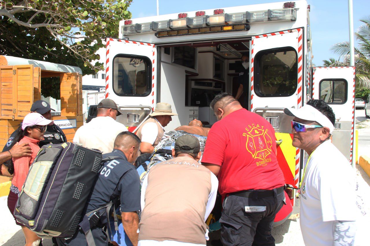 De acuerdo con el procedimiento de atención en caso de este tipo de emergencias, bajaron a la playa también los paramédicos de la ambulancia y reforzaron la atención inmediata, trasladándolo en camilla hacia la unidad de auxilio en la que siguieron con la valoración que determinó su traslado hacia el hospital más cercano, acción que dio conclusión al ejercicio.