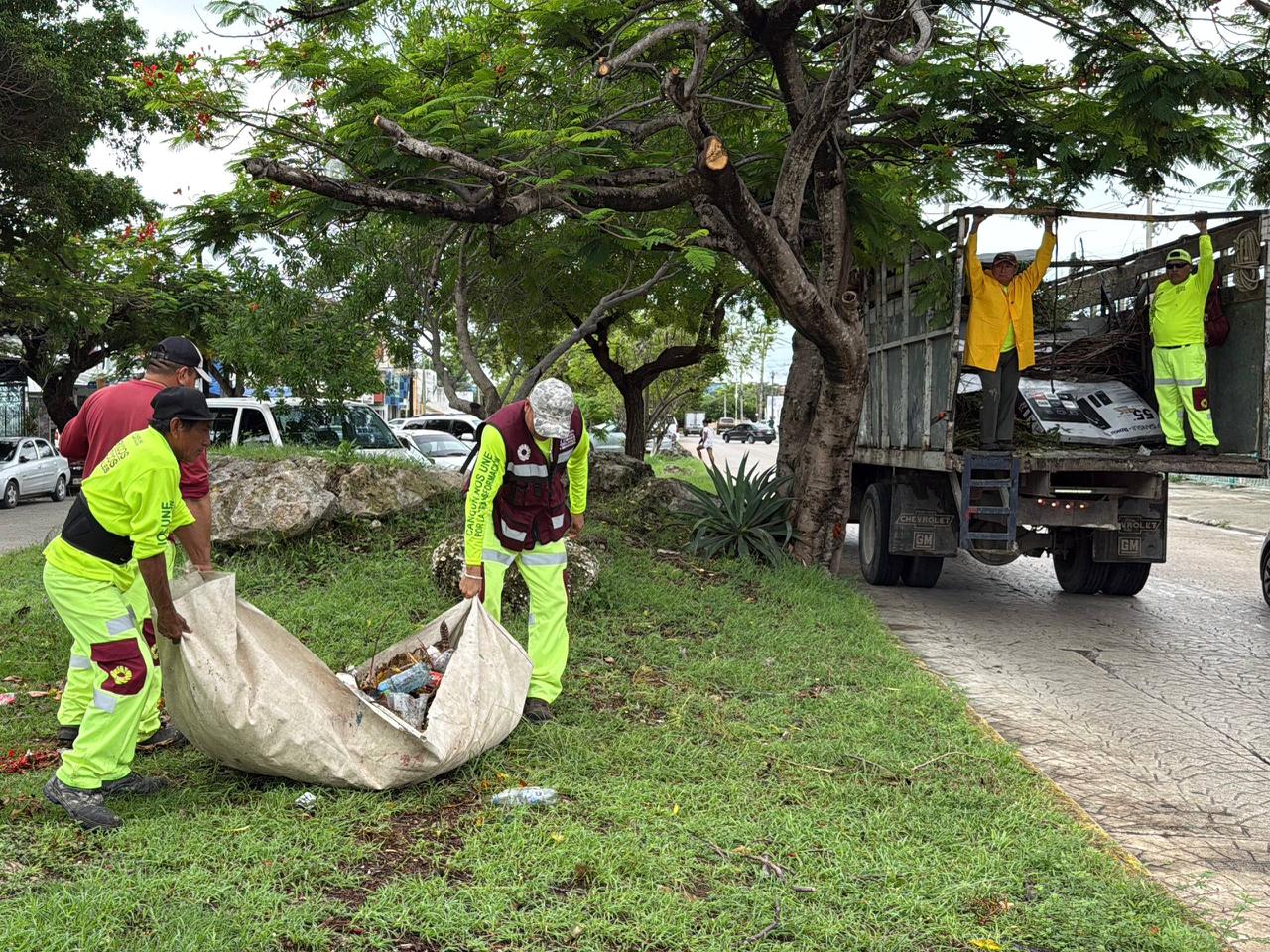 Avenida del Bosque; recolección de basura en Diagonal Tulum con Calle 60; corte