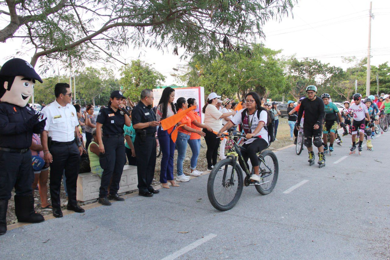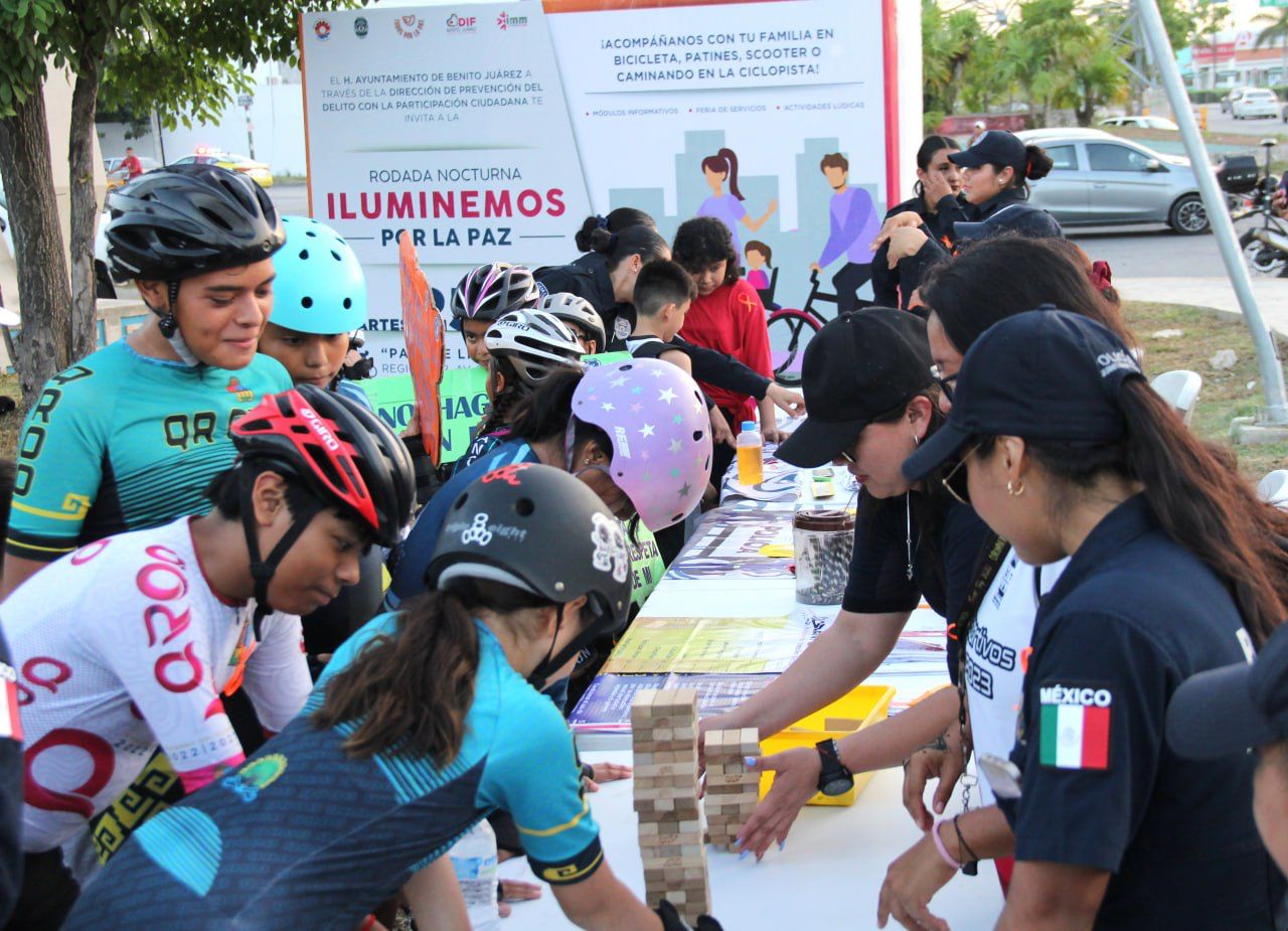 Para dar inicio con esta rodada en la Supermanzana 222, se realizó el tradicional banderazo de salida, en donde diferentes servidores públicos acompañaron en todo momento a los participantes que recorrieron la ciclopista del Parque de la Equidad, hasta llegar al cruce de avenida Chac Moll con avenida 20 de Noviembre, en donde fueron recibidos por una feria de servicios con módulos informativos y actividades lúdicas por parte de la Dirección General de Ecología, el Sistema para el Desarrollo Integral de la Familia (DIF), el Instituto Municipal de la Mujer (IMM), el Instituto Municipal Contra las Adicciones (IMCA), FARO y la Dirección de Prevención del Delito con la Participación Ciudadana, entre otros.