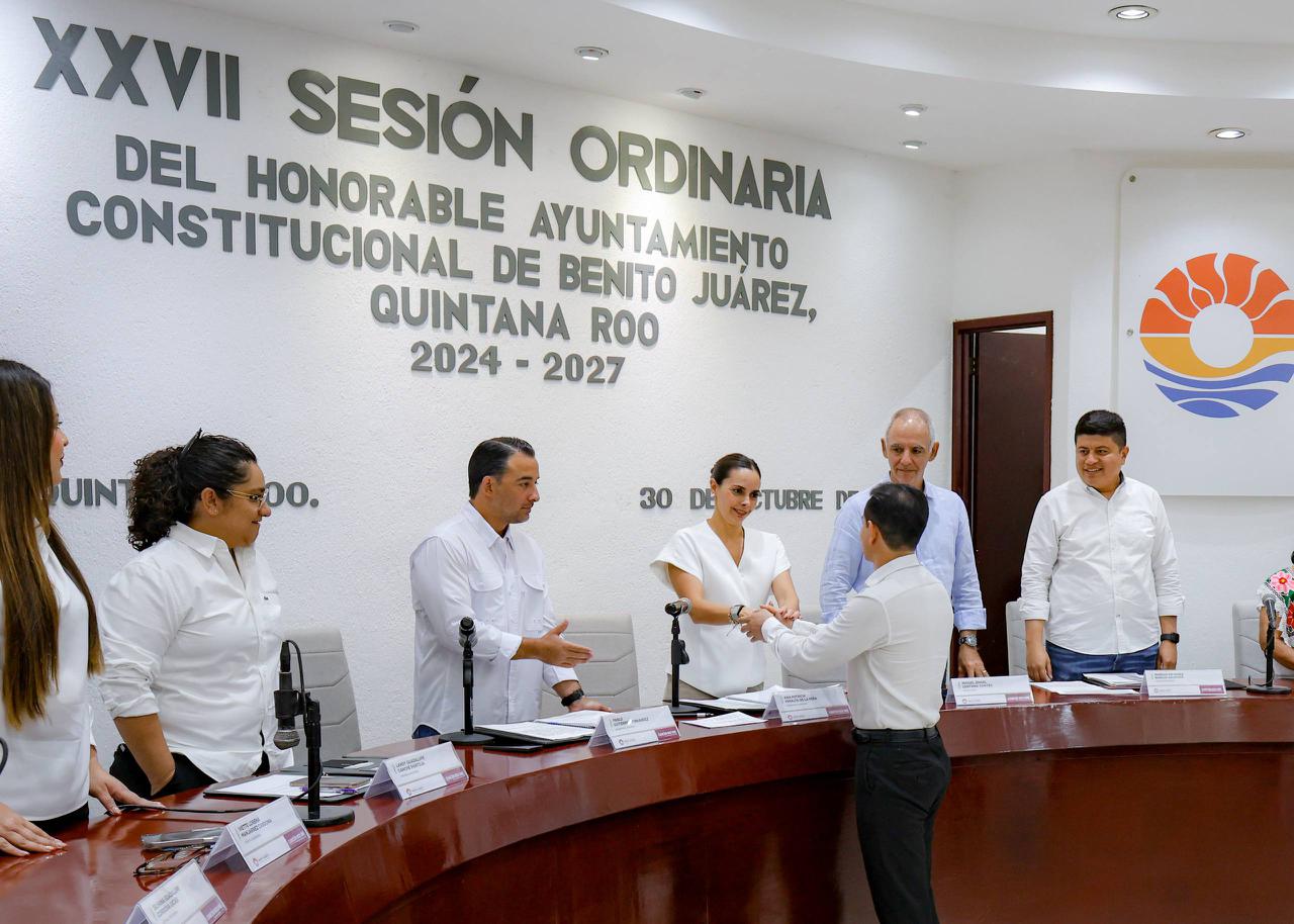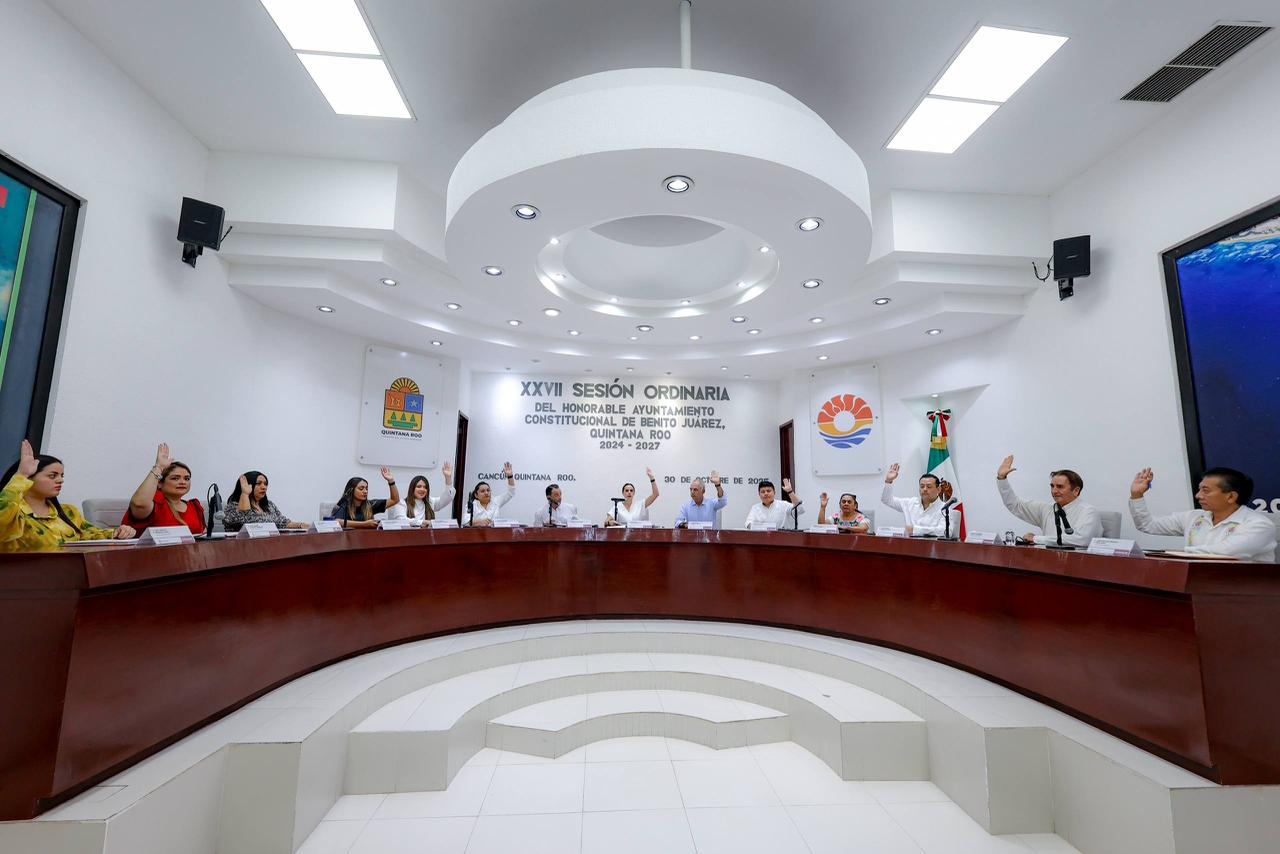 Cancún, Q. R., a 30 de octubre de 2025.- En el marco de la Vigésima Séptima Sesión Ordinaria, el Cabildo de Benito Juárez aprobó de forma unánime turnar a Comisiones Unidas la iniciativa de la Presidenta Municipal, Ana Paty Peralta, en la que se expide el Reglamento del Consejo de Paz y Justicia Cívica del Municipio de Benito Juárez, Quintana Roo, convirtiéndose en el primer municipio de la Entidad en aprobar los Comités de Paz, homologándose a la política nacional de construcción de paz impulsada por la Presidenta de México, Claudia Sheinbaum Pardo.
