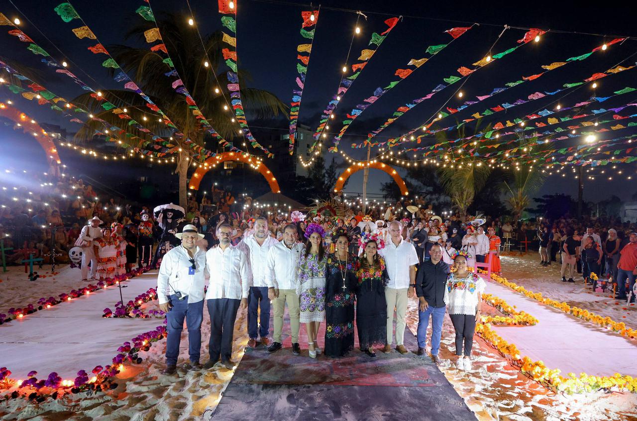 Cancún, Q. R., a 01 de noviembre de 2025.- Con un ambiente envuelto en el perfume del copal, los pétalos anaranjados del cempasúchil y el susurro característico del Mar Caribe, la Presidenta Municipal, Ana Paty Peralta, con la gobernadora, Mara Lezama, lideraron en el Festival Janal Pixan en Puerto Juárez, un encuentro lleno de misticismo, identidad y orgullo que honra a los fieles difuntos y preserva el legado de las tradiciones mayas y mexicanas, al cual se sumaron más de 75 mil asistentes en tres días de fiesta, que inició desde el pasado jueves.