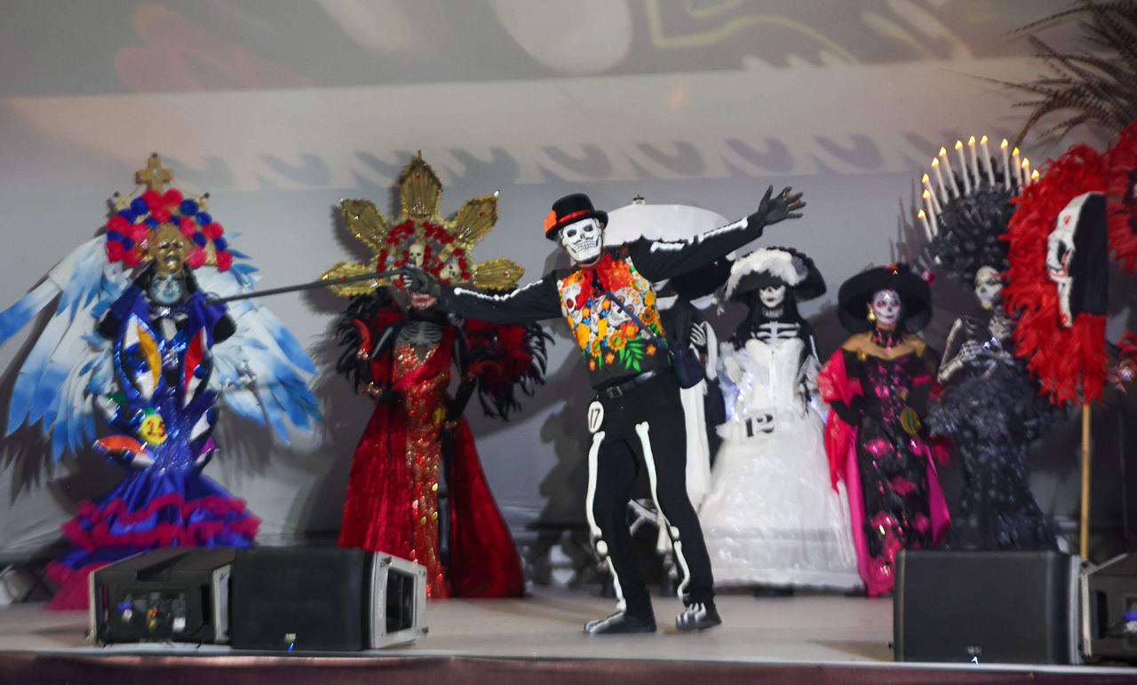 pasarela del concurso de catrinas y catrines.