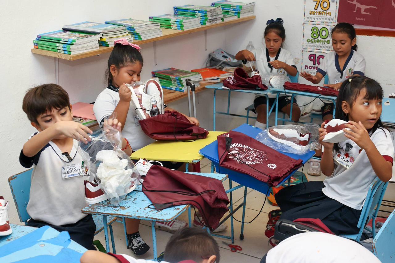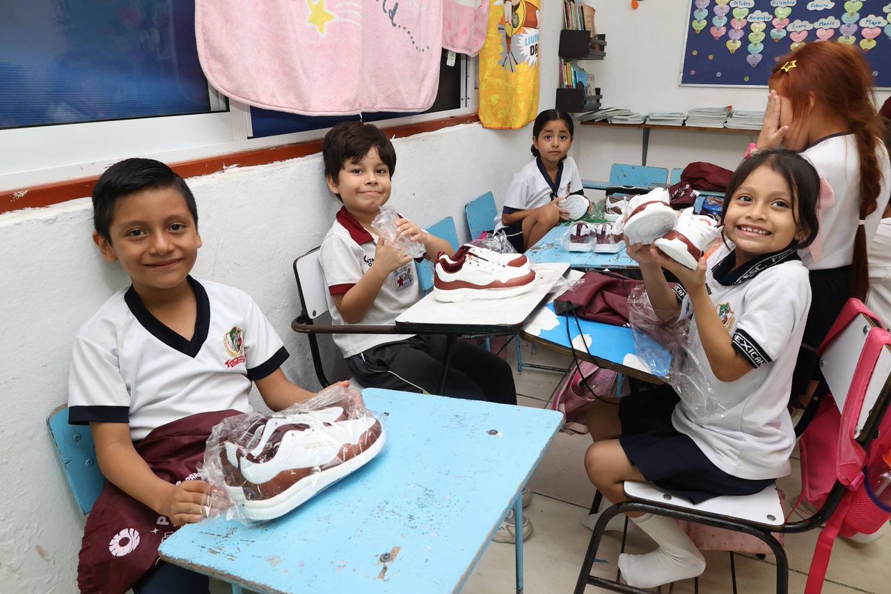 · Visitó la primaria “Niño Mexicano”, en la que se otorgaron 457 pares de tenis escolares de la meta total en Benito Juárez