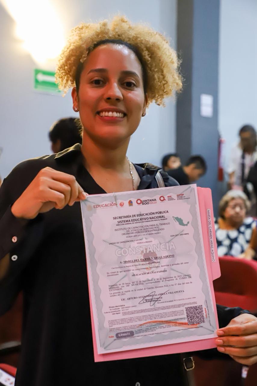 jefe de la Unidad de Capacitación del ICATQR, Arturo Álvarez Ibarra, Carrillo Figueroa refirió que esta entrega se
