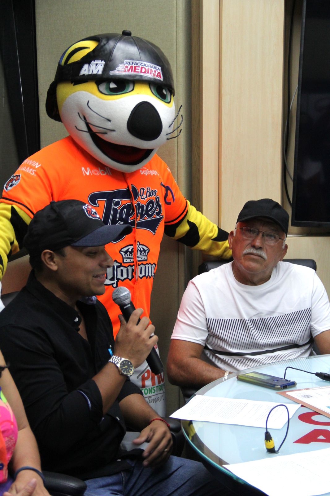 En la conferencia estuvieron presentes los directores de RCA, Fausto Adrián Palacios; de DIF Benito Juárez, Marisol Sendo Rodríguez; de Relaciones Públicas, Aurora Aguilar Rivero; del Instituto Municipal contra las Adicciones (IMCA), Oscar Guzmán Zerecero; el director de Marketing de Tigres de Quintana Roo, Mario Serrano Velázquez, así como la mascota oficial del equipo “Chacho”.