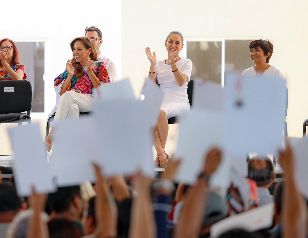 · De manos de la Presidenta de México, Claudia Sheinbaum Pardo, estudiantes cancunenses reciben las primeras tarjetas en la Entidad