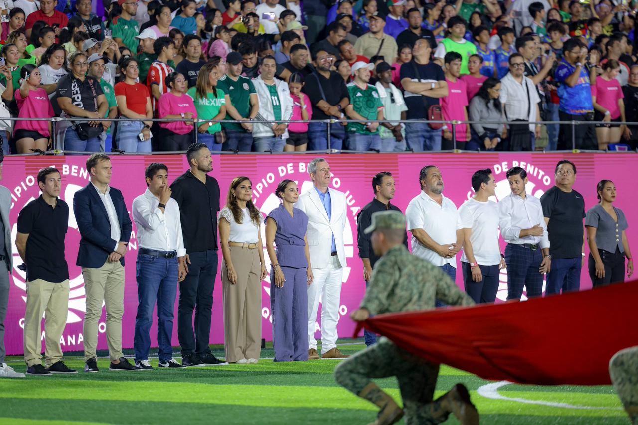 El evento también contó con honores al Lábaro Patrio con la bandera monumental como protagonista, un espectáculo artístico con puro talento cancunense, así como un desfile de banderas, show de láser y el mensaje inaugural del presidente de la Federación Internacional de Socca, David Leone.
