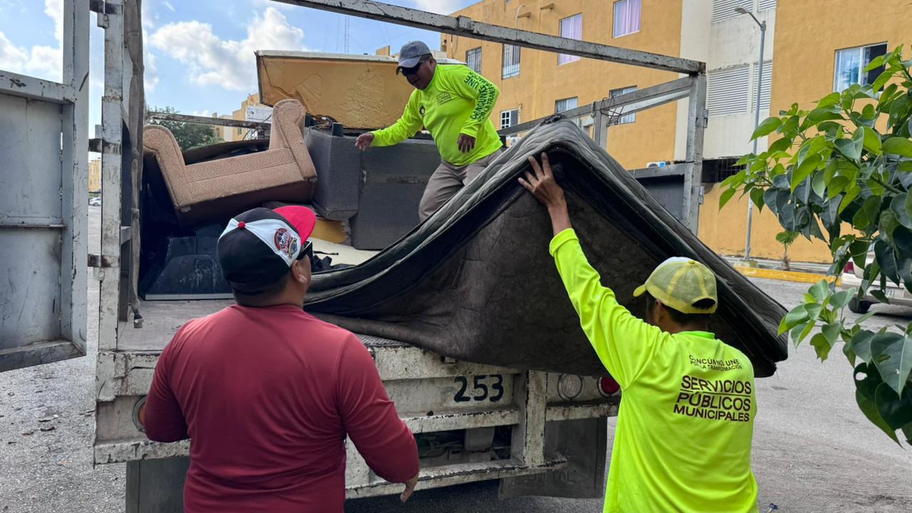 Cancún, Q. R., a 04 de diciembre de 2025.- En atención a un reporte que mencionó la gobernadora, Mara Lezama, en su programa “La Voz del Pueblo”, el Ayuntamiento de Benito Juárez, encabezado por la Presidenta Municipal, Ana Paty Peralta, a través de la Dirección General de Servicios Públicos, brindó atención inmediata con los basureros a las y los vecinos colindantes de los fraccionamientos “Isla Madeira” y “Lealtades”, quienes reportaron la acumulación de inmuebles que representan un foco de infección y sobre todo, dan mala imagen a la ciudad.