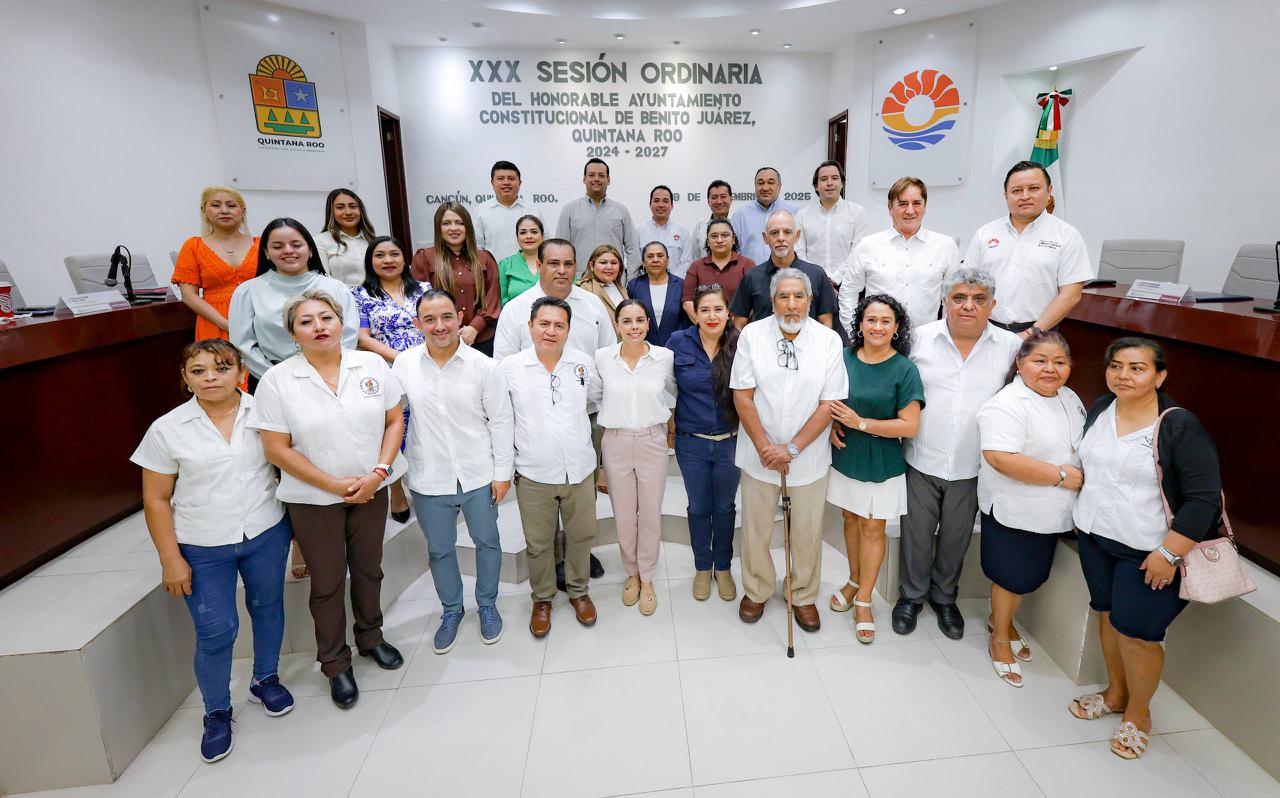 Cancún, Q. R., a 09 de diciembre de 2025.- Al celebrarse la Trigésima Sesión Ordinaria, encabezada por la Presidenta Municipal, Ana Paty Peralta, el Cabildo de Benito Juárez aprobó por unanimidad instituir dentro del calendario cívico del municipio el primer miércoles de mayo de cada año como el “Día Municipal del Tianguista”, a efecto de reconocer esta actividad como un pilar de la economía circular, que genera autoempleo y abasto para la población.