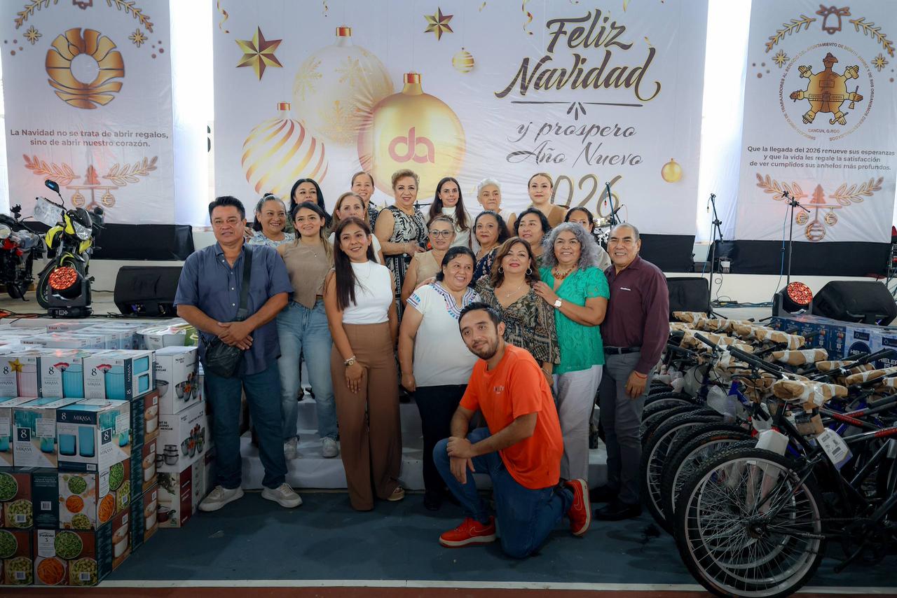 A nombre de la gobernadora Mara Lezama, la titular de la Secretaría Anticorrupción y Buen Gobierno, destacó el trabajo de la Alcaldesa que cierra con broche de oro el 2025 con el personal de todas las dependencias, a quienes deseó lo mejor para ellos y sus seres queridos.