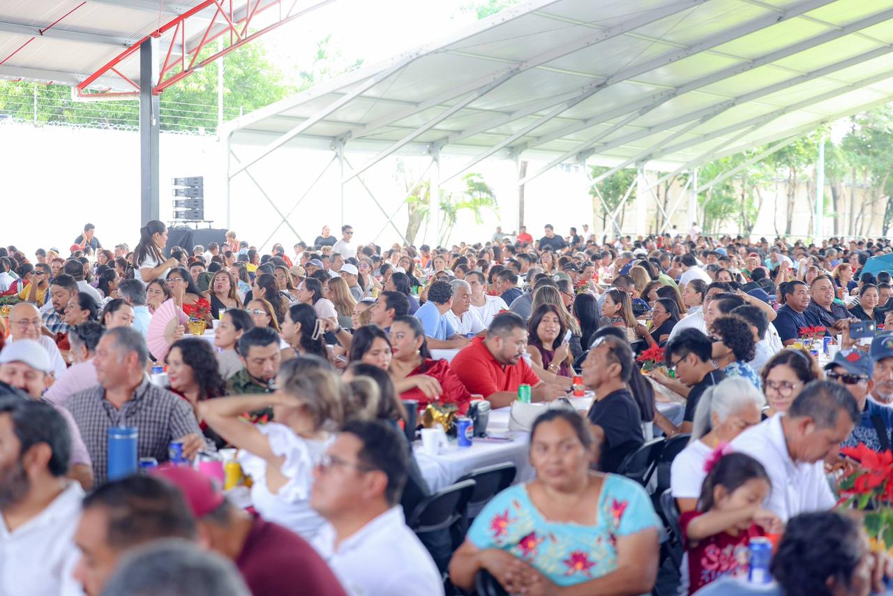 En un ambiente de celebración, ante más de 2 mil 500 servidores públicos que se reunieron como una gran familia para convivir sanamente previo a la llegada de la Navidad, la Primera Autoridad Municipal destacó que muchos de ellos realizan laboran desde el amanecer hasta el anochecer, en la lluvia, bajo el rayo del sol, atendiendo a las y los ciudadanos con la sensibilidad que les caracteriza, pero todos unidos siempre.