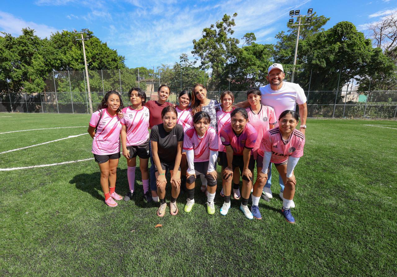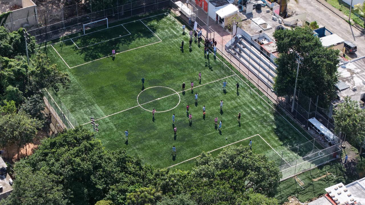 “Este espacio público aleja a los jóvenes de las violencias, de las conductas autodestructivas y acerca valores; esta cancha tiene baños, cámaras y botón de pánico”, resaltó.