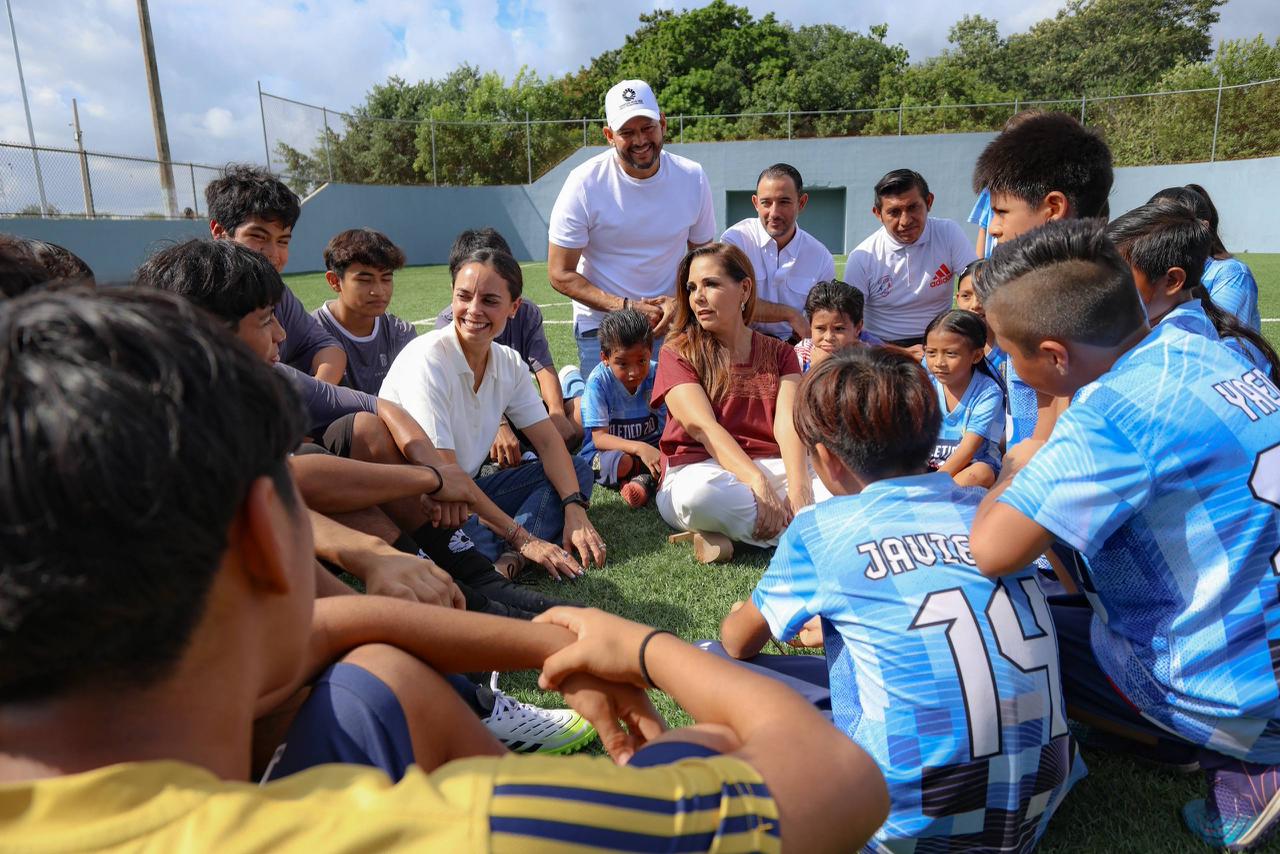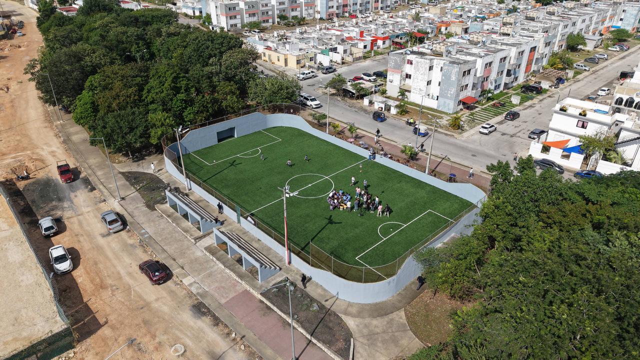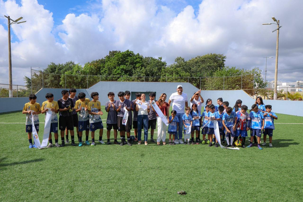 Cancún, Q. R., a 28 de diciembre de 2025.- Con el firme compromiso de seguir impulsando el deporte como motor de transformación social, la Presidenta Municipal, Ana Paty Peralta, y la Gobernadora, Mara Lezama Espinosa, entregaron la cancha de pasto sintético en la Supermanzana 258, fraccionamiento “Arcos Paraíso”, un lugar para que las niñas, niños y jóvenes puedan jugar, convivir y soñar.