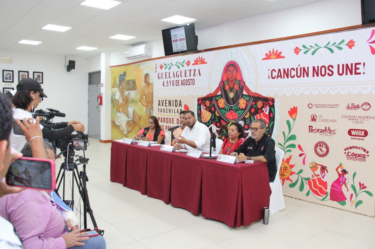 Cancún, Q. R., a 01 de agosto de 2023.- En conferencia de prensa, autoridades del gobierno de Benito Juárez, hicieron una extensa invitación a las y los cancunenses para disfrutar de la gran fiesta de la “Guelaguetza Cancún”, que se llevará a cabo del 4 al 6 de agosto en la tradicional avenida Yaxchilán y el emblemático Parque de Las Palapas, en el corazón de la ciudad.