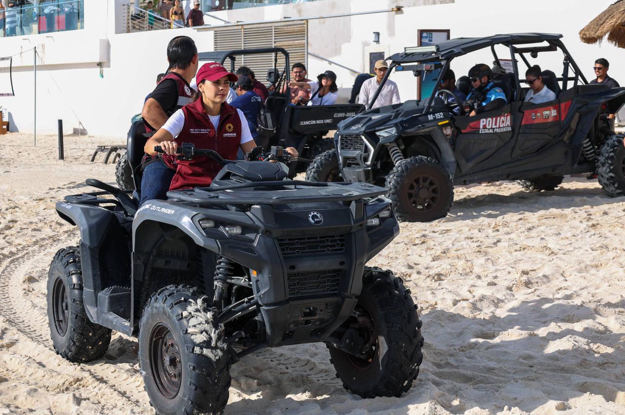 Cancún, Q. R., a 03 de enero de 2026.- Al encabezar una supervisión en los primeros días del inicio de año en Playa Delfines, la Presidenta Municipal, Ana Paty Peralta, invitó a la ciudadanía a disfrutar de los arenales públicos haciendo uso del servicio de transporte “Ruta Mar”, una alternativa gratuita y segura para los cancunenses.