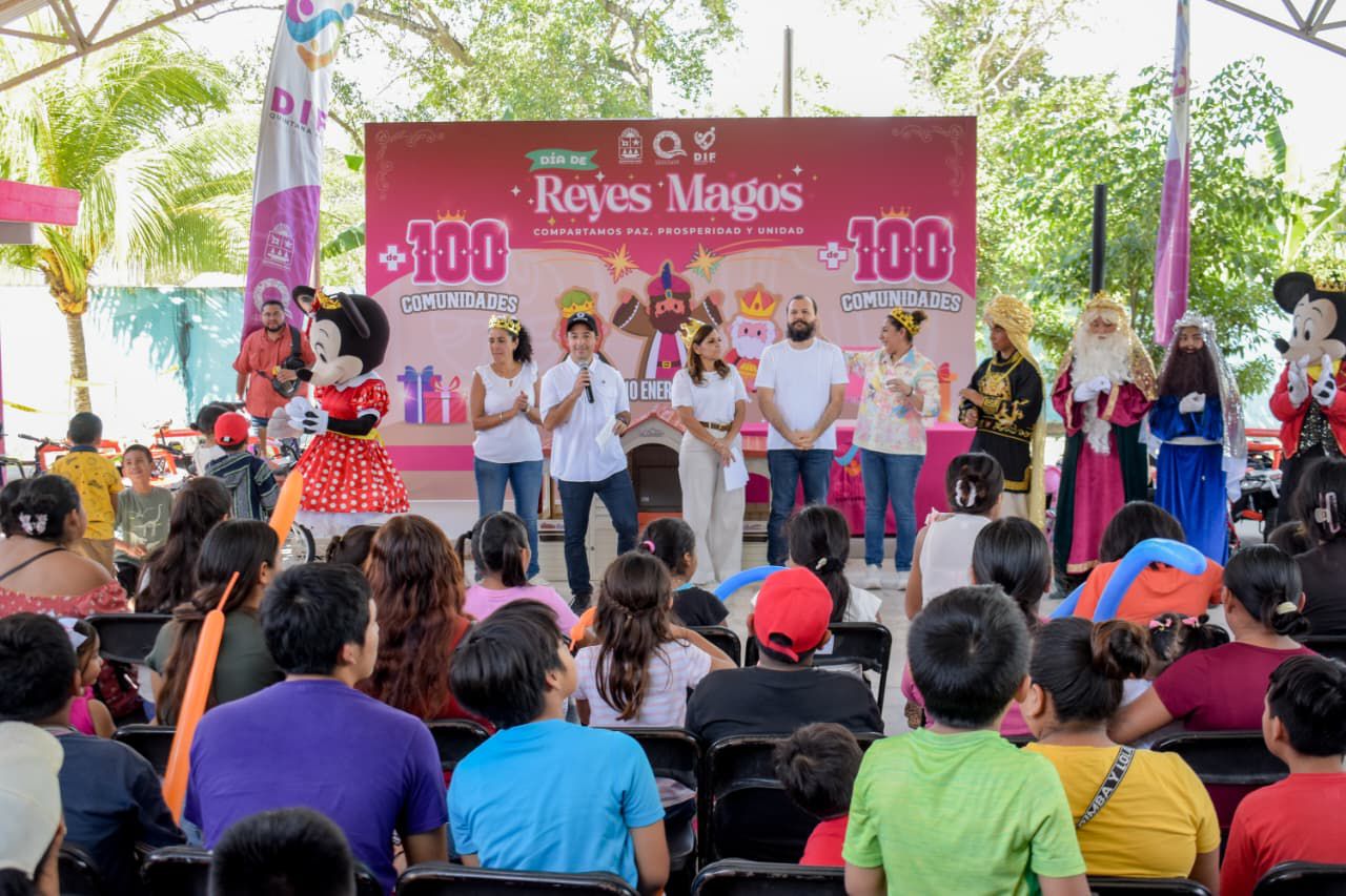 La celebración del Día de Reyes forma parte de la estrategia estatal 100 Comunidades, impulsada por la gobernadora Mara Lezama, la cual recorre diversos municipios de Quintana Roo para llevar actividades lúdicas, shows infantiles, dinámicas, regalos y espacios de convivencia familiar a niñas, niños y adolescentes.