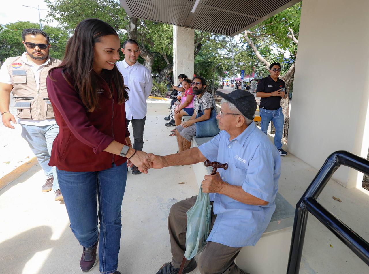 Primeramente, Ana Paty Peralta acudió al nuevo paradero en la bahía dirección norte de dicha vialidad, frente al Mercado Ki Huic, donde explicó a los pasajeros y choferes de las unidades, las modificaciones como la amplitud del doble de tamaño para que se protejan del sol o la lluvia durante su espera.