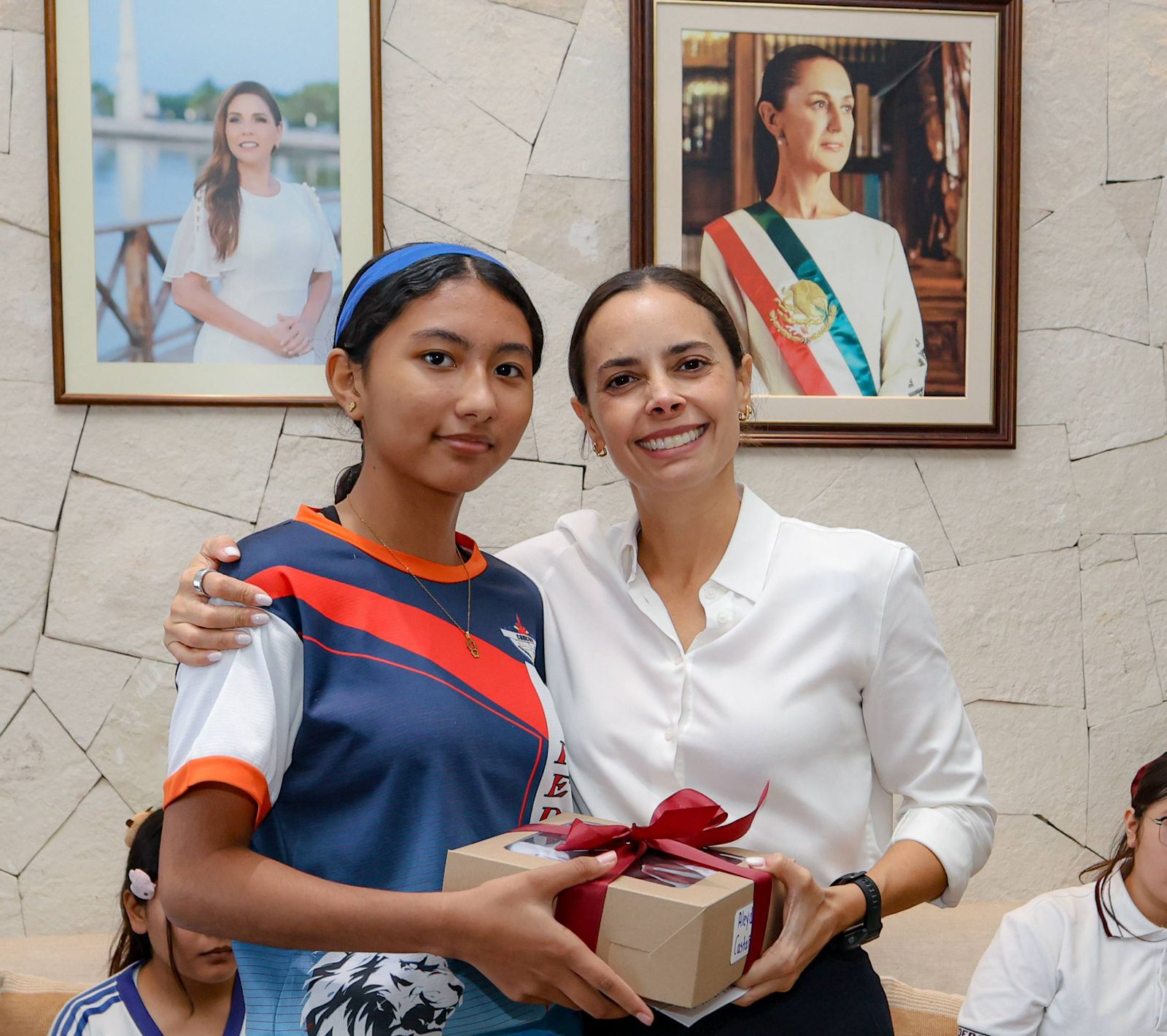 Cancún, Q. R., a 15 de enero de 2026.- La Presidenta Municipal, Ana Paty Peralta, entregó uniformes a la escolta de la secundaria general No. 9 “Jesús Reyes Heroles”, producto de una gestión de una de las propias alumnas para participar en próximas competencias de la materia y seguir enalteciendo los símbolos patrios.