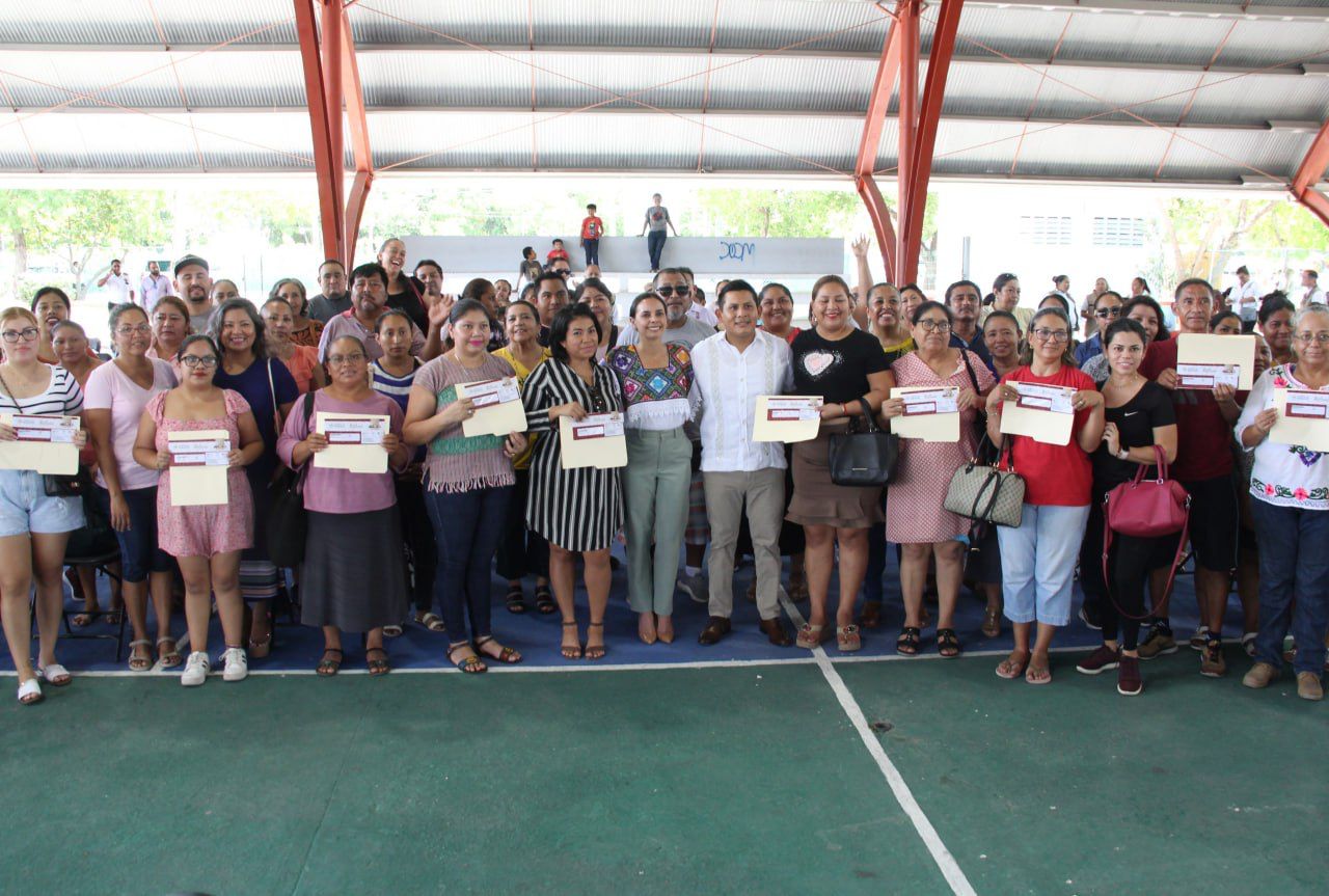 Las instituciones beneficiadas fueron: el Centro de Atención Múltiple (CAM) “Eduard Huet”; los Jardines de Niños “Teresita Osante Altamirano” y “Ángel Gabino Corzo”; las escuelas primarias “Mario Francisco Castillo Espinoza”, “Simón Bolívar”, “Adolfo López Mateos”, “Benjamín Sabido Rosado”, “Octavio Paz”, “Emiliano Zapata”, “Tulum”, “Chichen Itzá”, “José María Morelos y Pavón”, “Matías Romero”; y las secundarias “Comunitaria”, “Gabriela Mistral” y “José María Morelos y Pavón”.