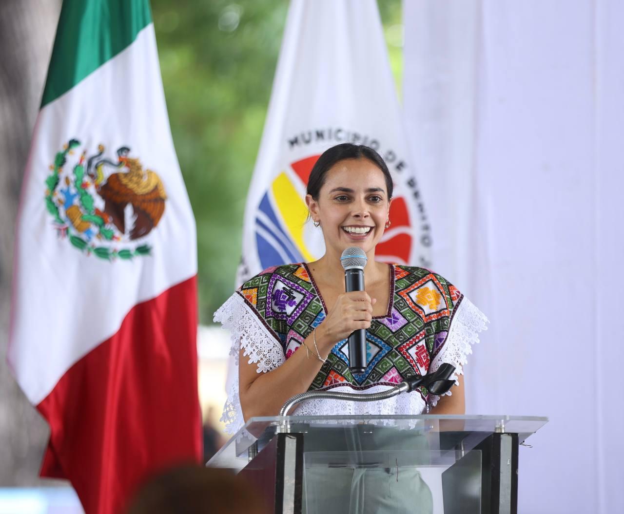 Cancún, Q. R., a 02 de agosto de 2023.- La Presidenta Municipal de Benito Juárez, Ana Paty Peralta, participó en la entrega de Tarjetas del Programa “La Escuela es Nuestra”, a 16 escuelas de nivel básico en Benito Juárez, Puerto Morelos y Leona Vicario, las cuales podrán acceder a un presupuesto para invertir en mejoras en instalaciones eléctricas, hidráulicas o sanitarias; mantenimiento preventivo, e incluso construcción de aulas y domos.