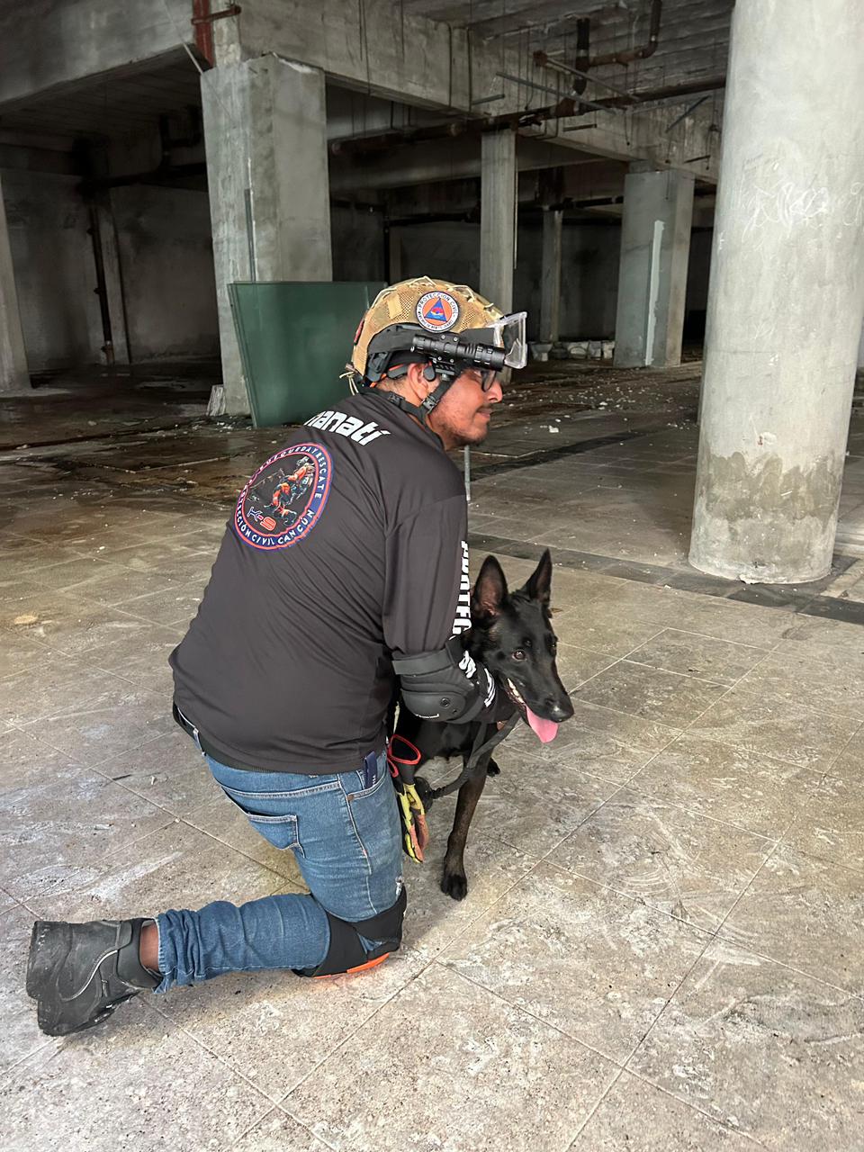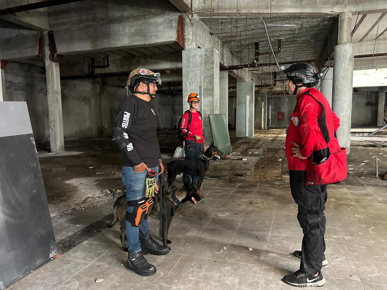 Asimismo, se contó con la participación de binomios de Protección Civil Cancún, encabezados por Marco Antonio Manatí, así como la canina Pantera, integrante de la Unidad K9 de Protección Civil, quien reforzó sus habilidades de búsqueda y localización de personas en escenarios de riesgo.