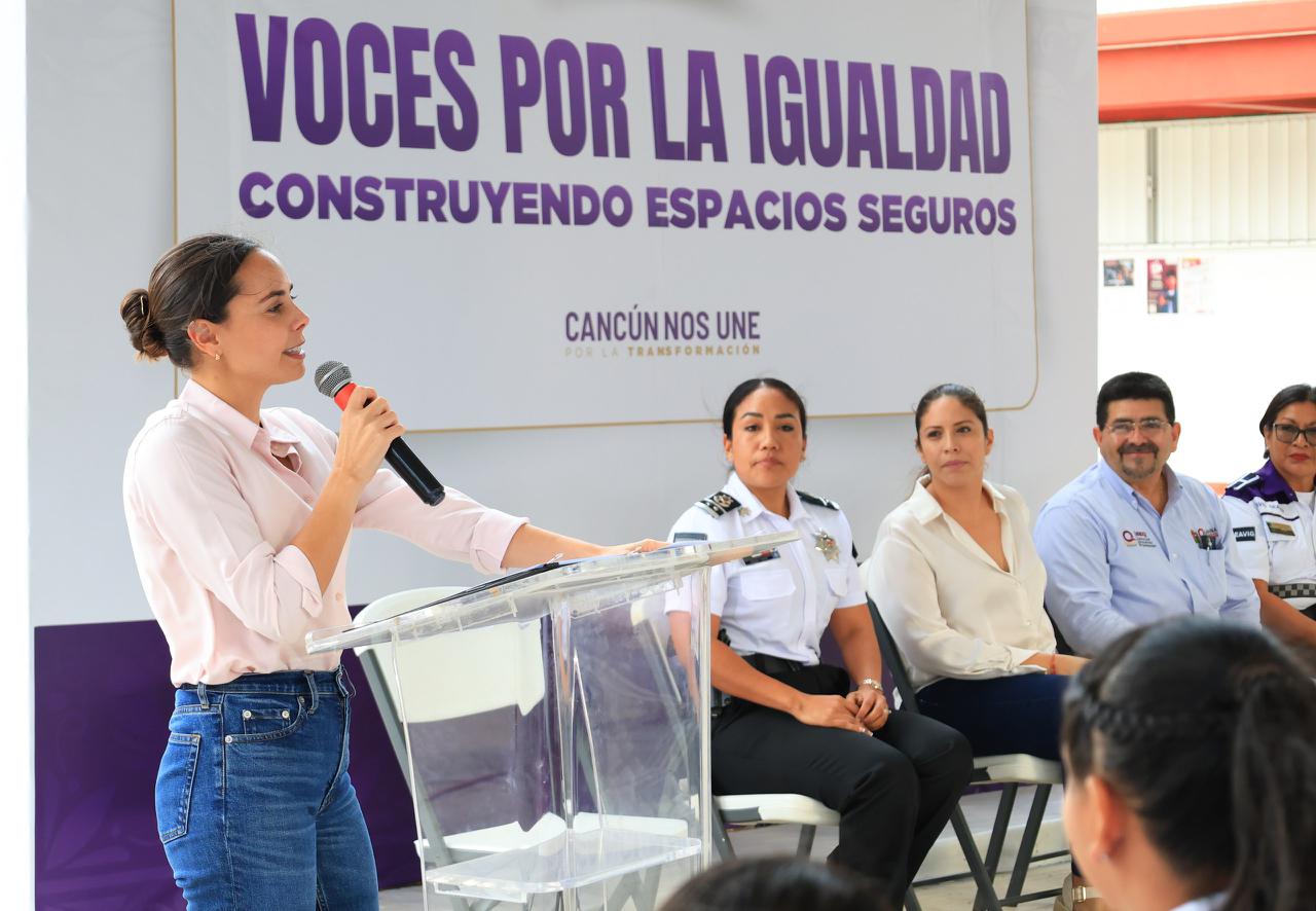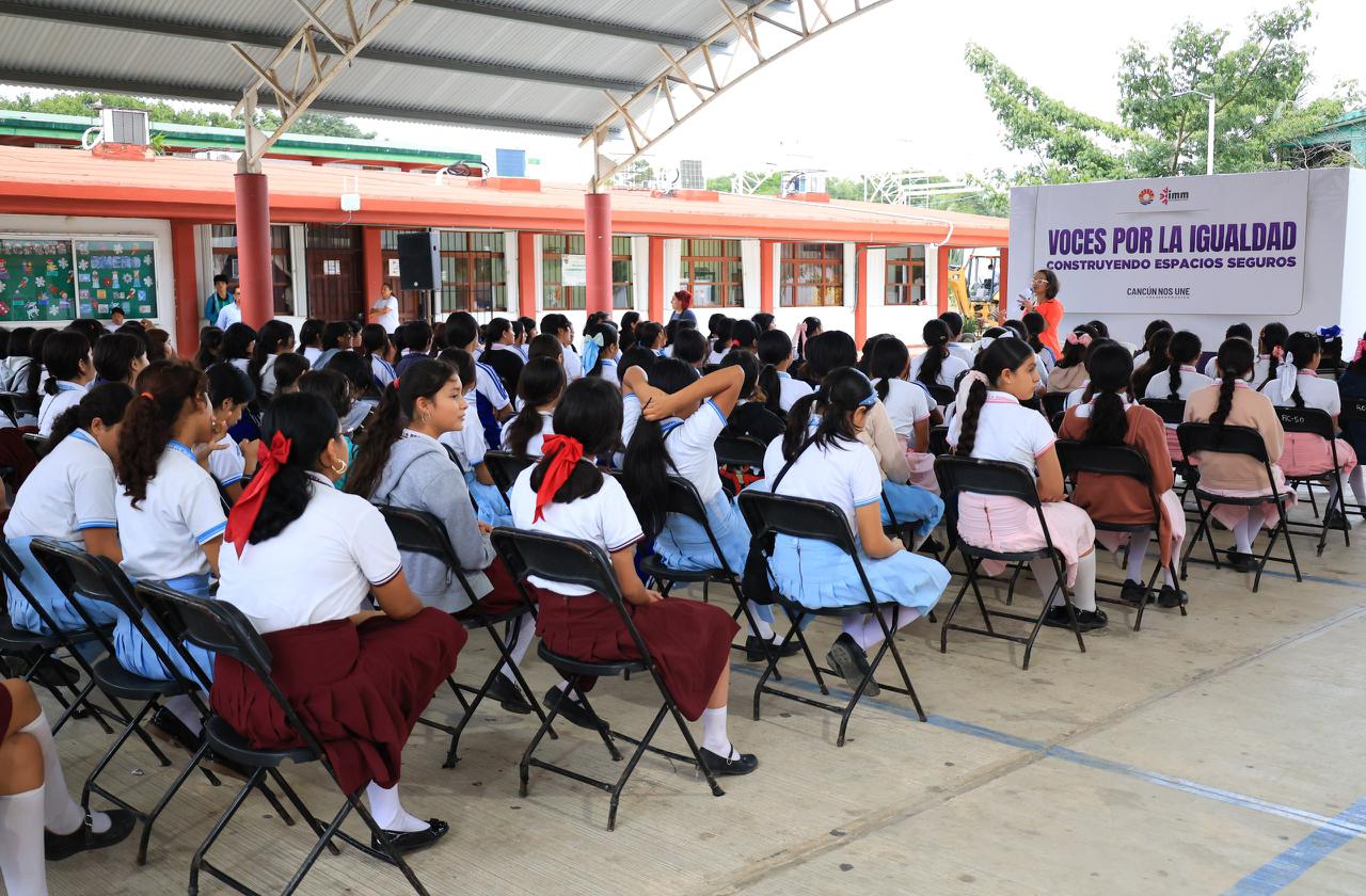 Cancún, Q. R., a 26 de enero de 2026.- Para continuar fomentando la participación de las mujeres y avanzar hacia una ciudad equitativa y libre de violencia, la Presidenta Municipal, Ana Paty Peralta, llevó a la Escuela Secundaria General No. 30 “Juan de la Barrera” el foro “Voces por la Igualdad, Construyendo Espacios Seguros”, con el que se instruyó y atendió a más de 150 alumnas.