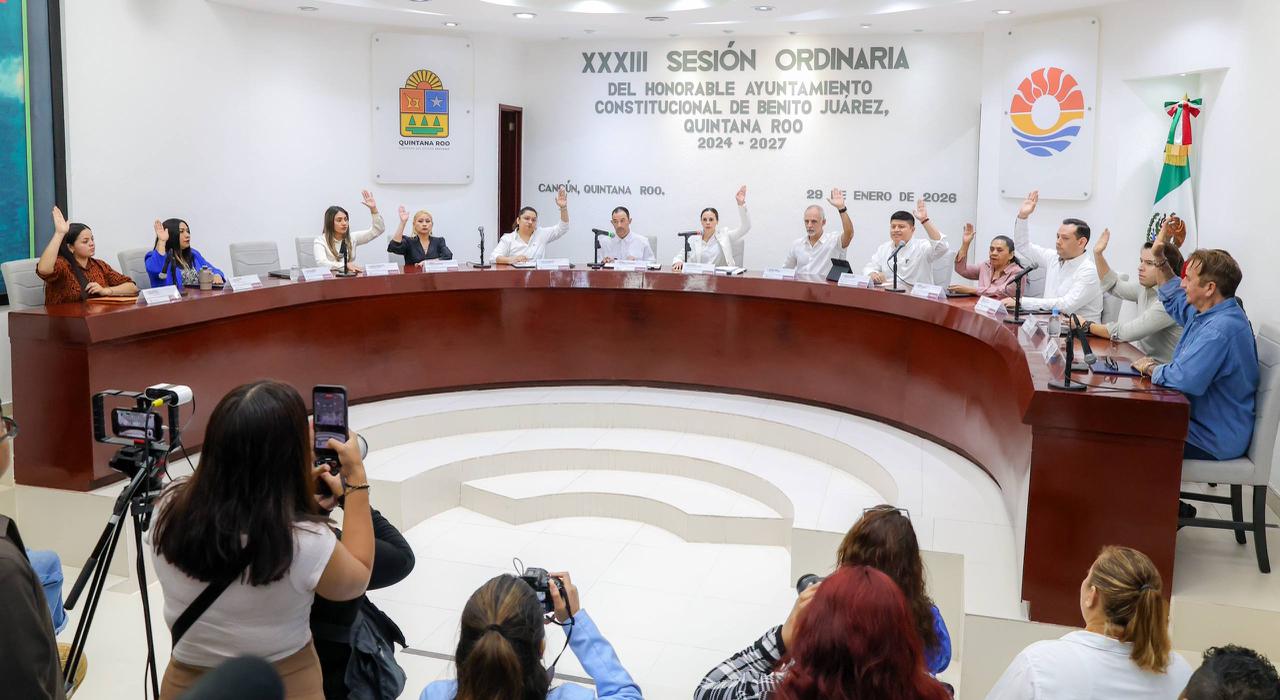 Cancún, Q. R., a 29 de enero de 2026.- En el marco de la Trigésima Tercera Sesión Ordinaria, encabezada por la Presidenta Municipal, Ana Paty Peralta, el Cabildo de Benito Juárez autorizó por unanimidad turnar a comisiones la iniciativa de reformas a varios ordenamientos municipales para que los comités vecinales asuman las funciones que corresponden a los denominados comités de paz, que precisamente estarán enfocados en prevenir la violencia, reconstruir el tejido social y promover la cultura de la paz en la ciudad.