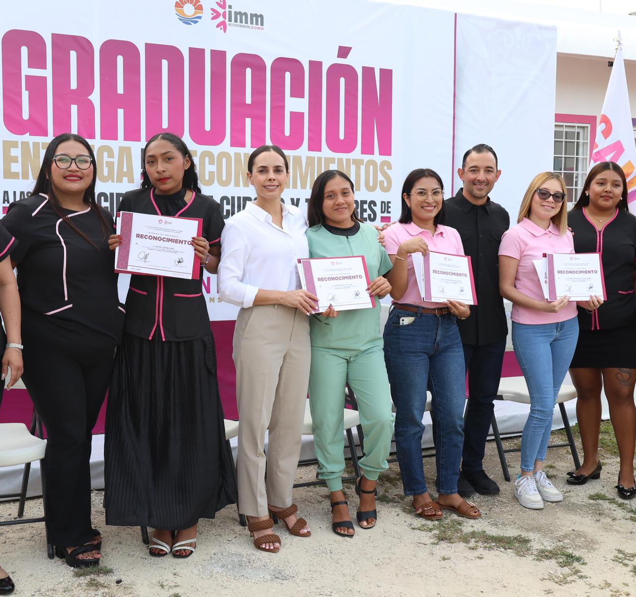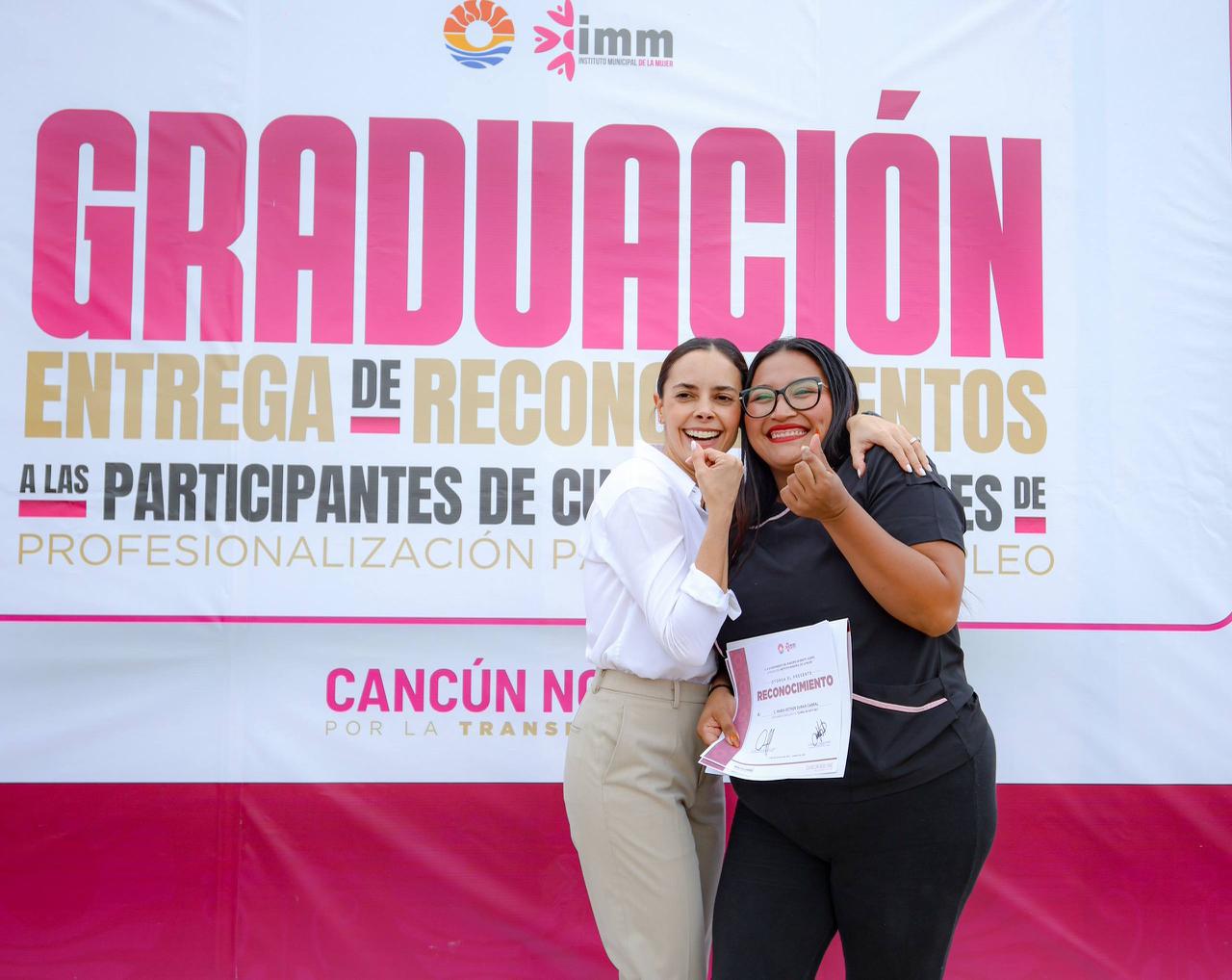 Cancún, Q. R., a 30 de enero de 2026.- Con gran orgullo, la Presidenta Municipal, Ana Paty Peralta, encabezó la ceremonia de graduación y entrega de 120 reconocimientos a 64 mujeres y hombres quienes culminaron su formación en los cursos y talleres de autoempleo impartidos por el Instituto Municipal de la Mujer (IMM), reafirmando su compromiso con el empoderamiento femenino, su independencia económica y la construcción de una ciudad más justa.