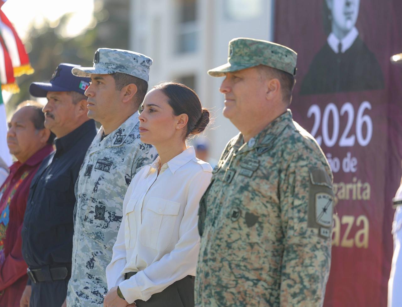 Finalmente, en este importante acto cívico estuvo el General Brigadier Estado Mayor, Claudio Edmundo Huizar de la Torre, comandante de la Guarnición Militar de Cancún; el Coronel de Infantería del Estado Mayor, Guillermo Robles Toscano, Comandante del 64 Batallón de Infantería; el Capitán de Navío, Juan Francisco Ríos Gómez, en representación del Comandante de la Quinta Región Naval; el Capitán Segundo Guardia Nacional, Manuel Calderón Leyva, en representación del Comandante de la Décima Brigada de Policía Militar.