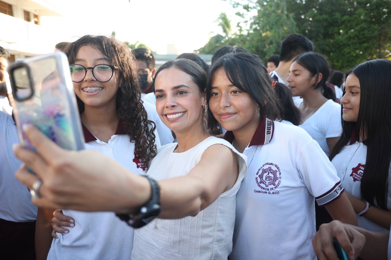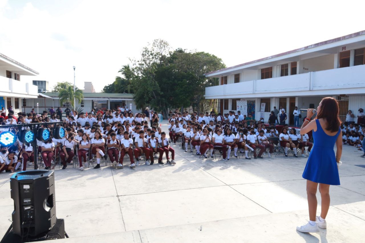 Cancún, Q. R., a 23 de mayo de 2023.- En una convivencia entre autoridades, jóvenes estudiantes y docentes, el Instituto de la Cultura y las Artes en Benito Juárez, llevó a cabo el programa “Cuentacuentos” en la Escuela Secundaria Técnica No. 32 "Independencia de México" en la Supermanzana 200, donde la Presidenta Municipal, Ana Paty Peralta, reafirmó su compromiso por el sano desarrollo de niñas, niños y adolescentes cancunenses.