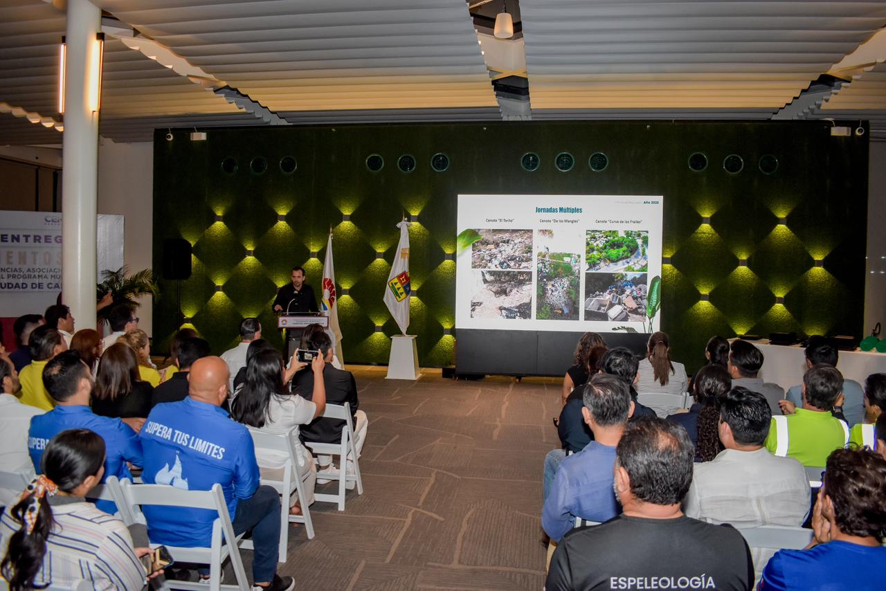 Por su parte, el director general de Ecología del Ayuntamiento de Benito Juárez, Fernando Haro Salinas, presentó el informe de resultados del programa Cenotes Urbanos Cancún, destacando que durante 2025 se intervinieron 19 cenotes urbanos mediante 23 jornadas de saneamiento, logrando la recuperación de 17.9 toneladas de residuos sólidos.