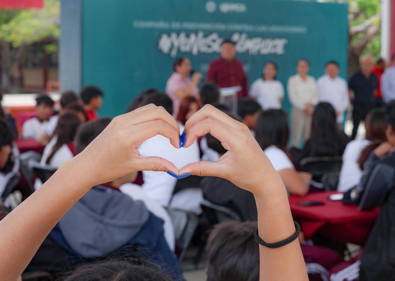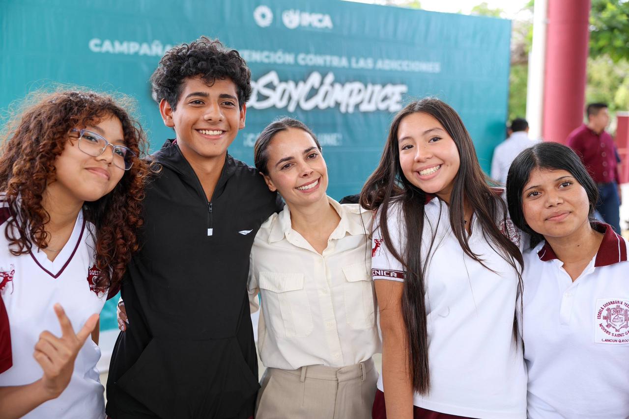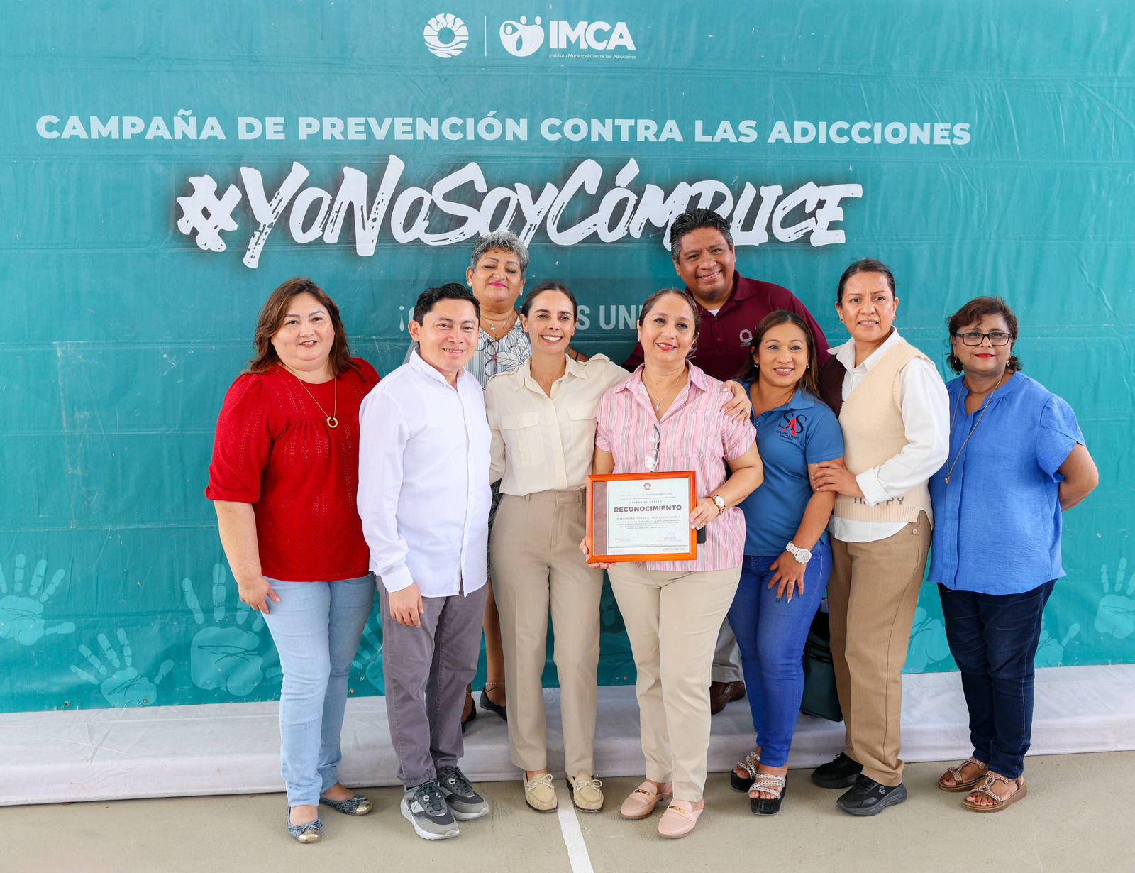 Cancún, Q. R., a 11 de febrero de 2026.– La Presidenta Municipal, Ana Paty Peralta, entregó el reconocimiento “Yo no soy cómplice” a la secundaria técnica No. 11 “Moisés Sáenz Garza”, por su apoyo y compromiso hacia los programas y actividades que realiza de manera permanente el Instituto Municipal Contra las Adicciones (IMCA) bajo el mismo nombre, para que la comunidad estudiantil viva libre de cualquier adicción, luego de la capacitación sobre varios temas a 160 alumnos.