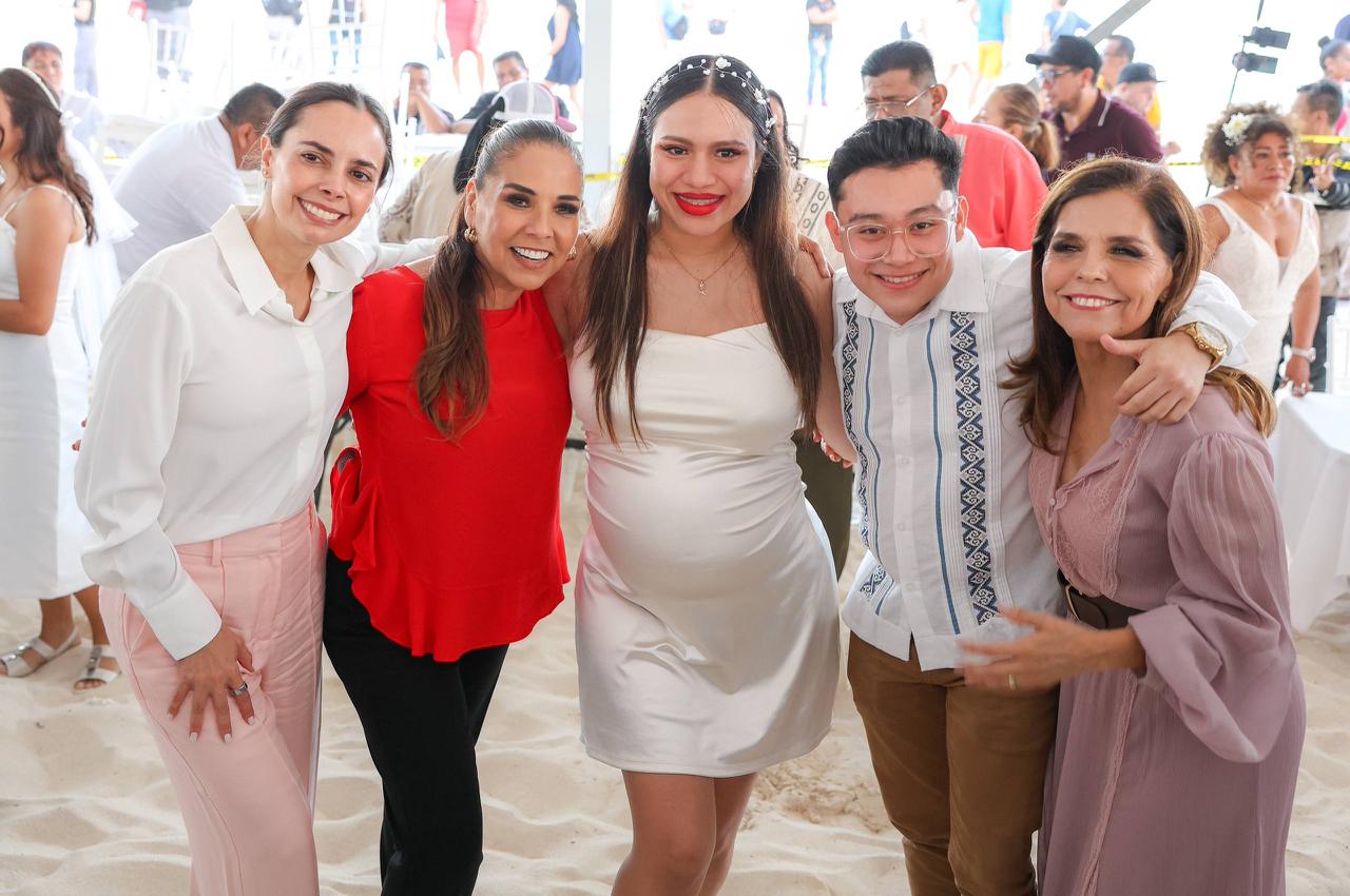Cancún, Q. R., a 12 de febrero de 2026.– Frente al Mar Caribe y en el marco del Día del Amor y la Amistad, la Presidenta Municipal, Ana Paty Peralta; la gobernadora, Mara Lezama, y la presidenta honoraria del DIF Quintana Roo, Verónica Lezama Espinosa, fungieron como testigos de honor en las Bodas Colectivas 2026 en Playa Delfines, donde 357 parejas contrajeron nupcias en una ceremonia llena de emoción, sonrisas y esperanza.