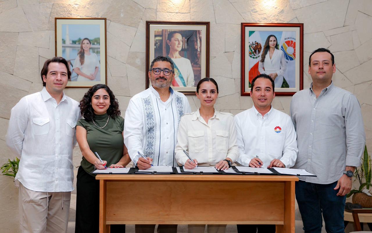 Presidenta Municipal, Ana Paty Peralta; el representante Regional en el Estado de Quintana Roo del INSUS, Julio