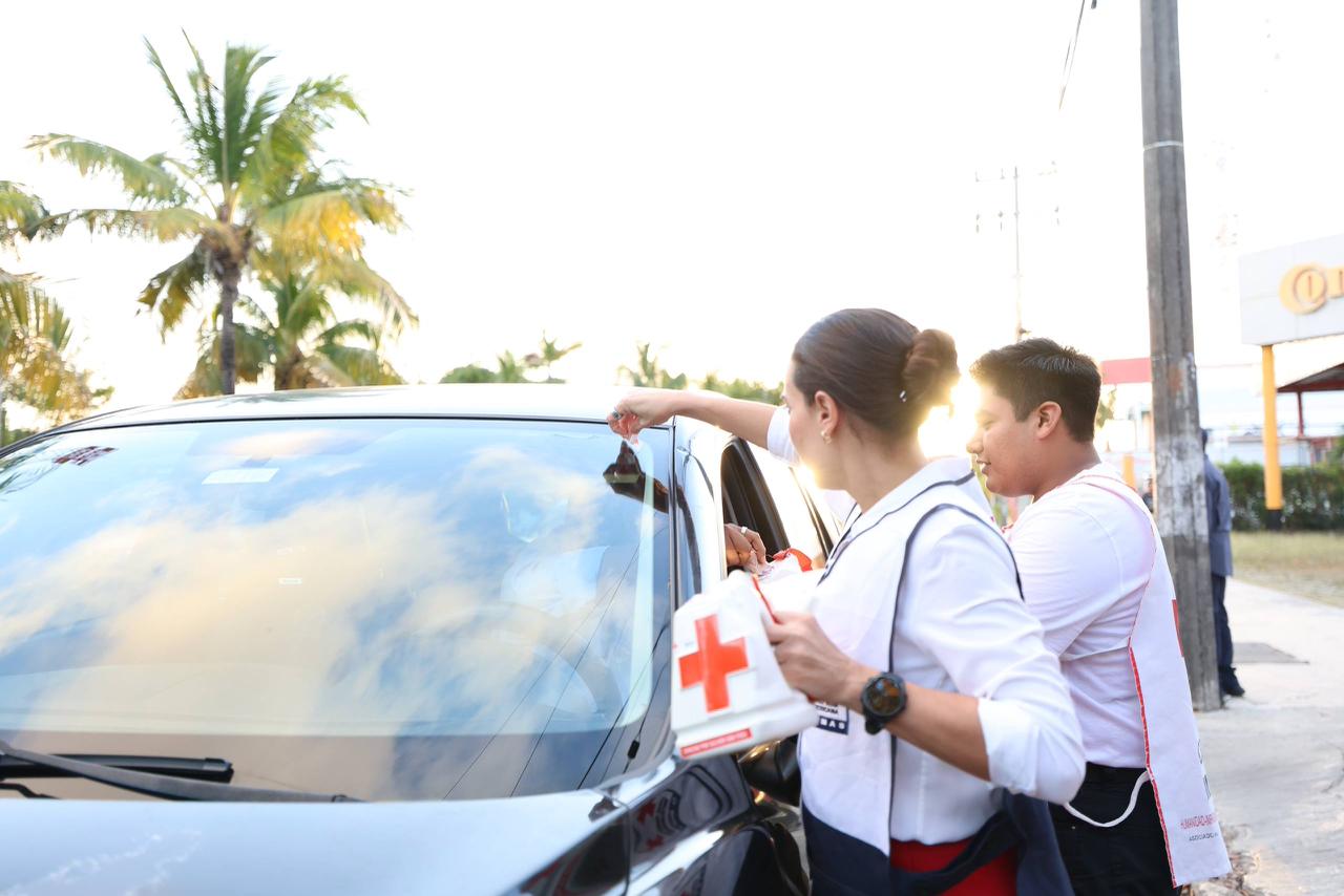 Al término del protocolo, autoridades, directivos, voluntarios y personal de la Cruz Roja, se concentraron en la avenida Xcaret para dar inicio formal al boteo, invitando a automovilistas y peatones a sumarse con su donativo.