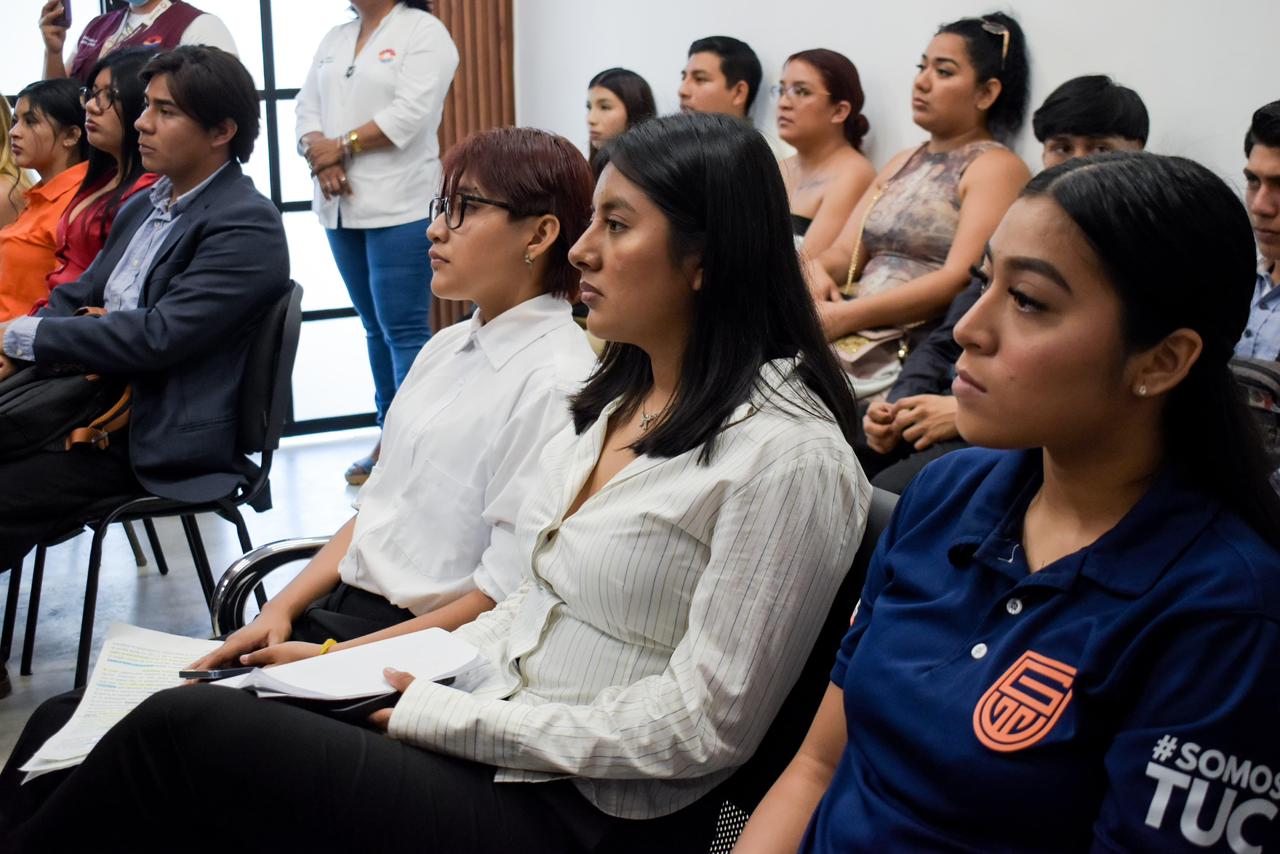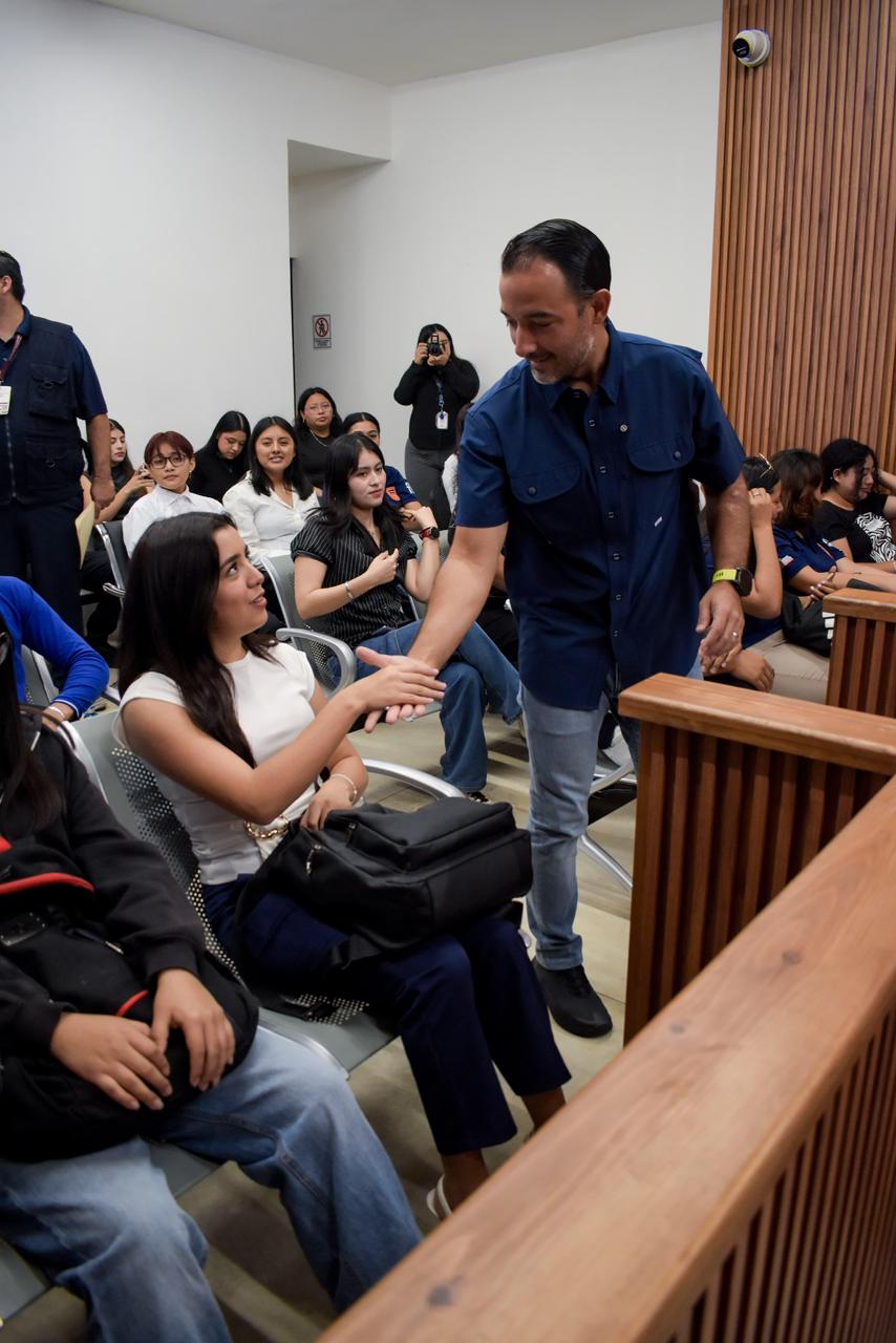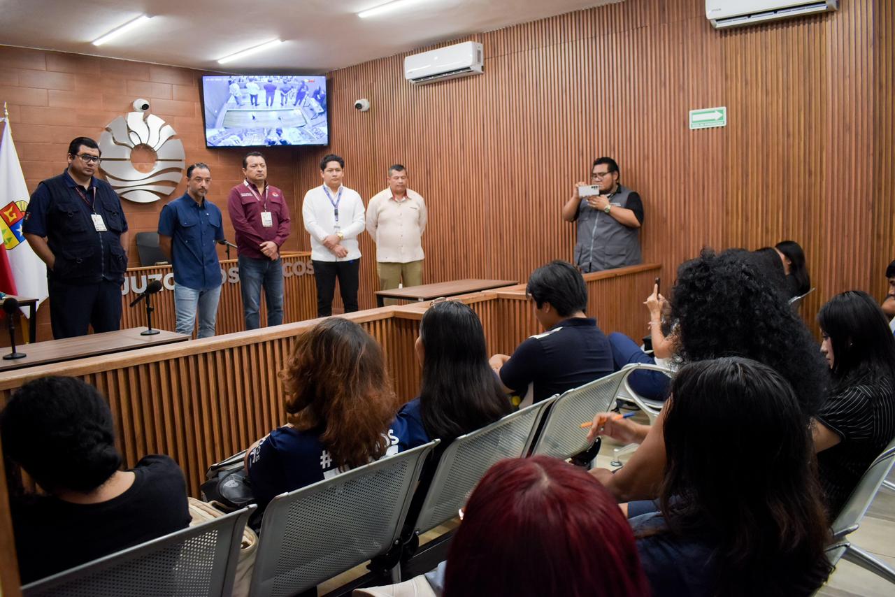 En representación de la Presidenta Municipal, Ana Paty Peralta, el funcionario encabezó un recorrido por la sala de audiencias orales ubicada en la Supermanzana 247, donde las y los jóvenes conocieron de cerca el funcionamiento del nuevo modelo de justicia cívica, así como el papel que desempeñan jueces, secretarios, defensores y demás participantes dentro de una audiencia.