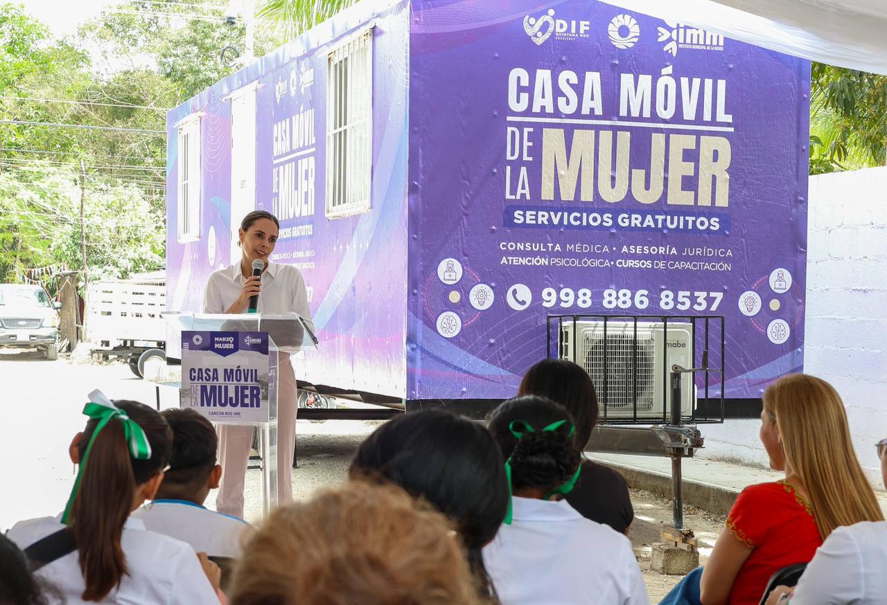 Además, la Alcaldesa añadió que esta unidad va a otorgar servicios gratuitos y recorrerá las diferentes colonias de Cancún acercando servicios de orientación legal, apoyo psicológico, consultas médicas, cursos de capacitación, así como orientación para empezar un negocio, además de realizar el acompañamiento jurídico para quienes se encuentren en algún momento difícil. Informó que en la ciudad hay 13 Casas de la Mujer y una Casa de la Mujer Emprendedora en la 228.