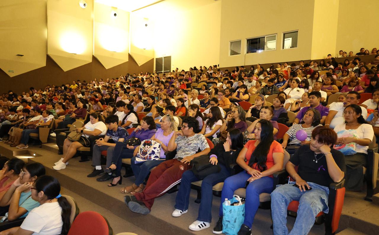 Cancún, Q. R., a 11 de marzo de 2026.- En el marco del Día Internacional de la Mujer, el Ayuntamiento de Benito Juárez, a través de la Secretaría Municipal de Bienestar, llevó a cabo el conversatorio “La Mujer Mexicana en el Sistema de Cuidados y Derechos Humanos”, un espacio de diálogo y reflexión que reunió a cientos de estudiantes del programa “Educación para Transformar”, así como a madres de familia y especialistas en la materia.