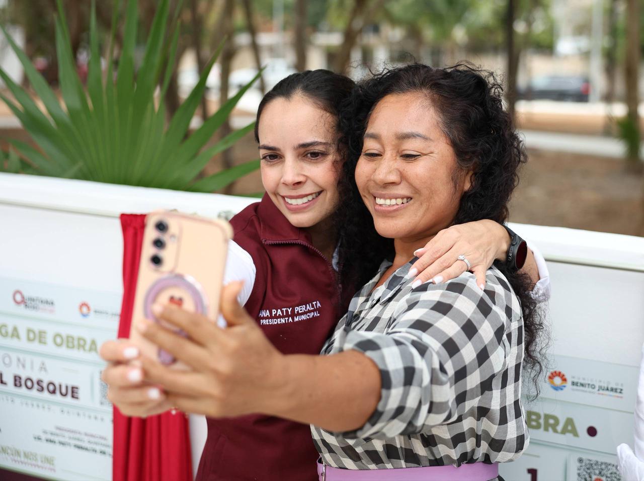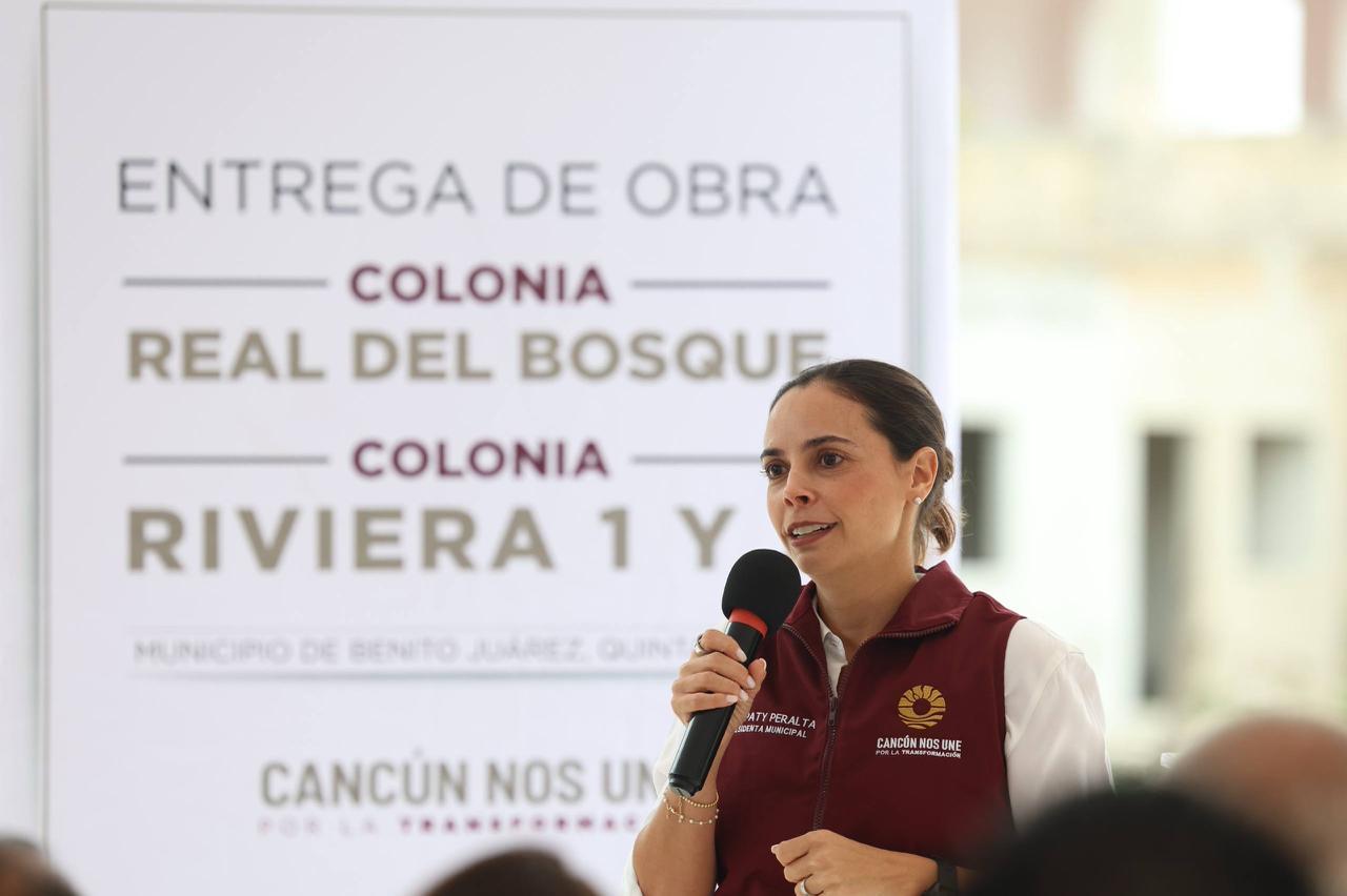 Cancún, Q. R., a 18 de marzo de 2026.- La Presidenta Municipal, Ana Paty Peralta, encabezó la entrega de obras de pavimentación en las colonias Real del Bosque, Riviera 1 y Riviera 2, en la Supermanzana 245, con las que se mejora la movilidad, la seguridad y la calidad de vida de más de 30 mil cancunenses.