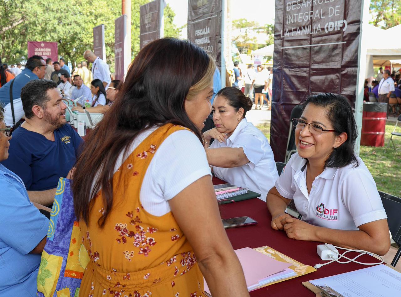 Cancún, Q. R., a 19 de marzo de 2026.- En el marco de la trigésima octava Jornada Día del Pueblo “Cancún Nos une por la Transformación”, la Presidenta Municipal, Ana Paty Peralta, refrendó su compromiso con las y los vecinos de la Supermanzana 77, a quienes escuchó, orientó y resolvió sus peticiones mediante las diferentes dependencias municipales, estatales y federales que se suman a este importante programa que acerca más de 130 trámites y servicios en toda la ciudad.