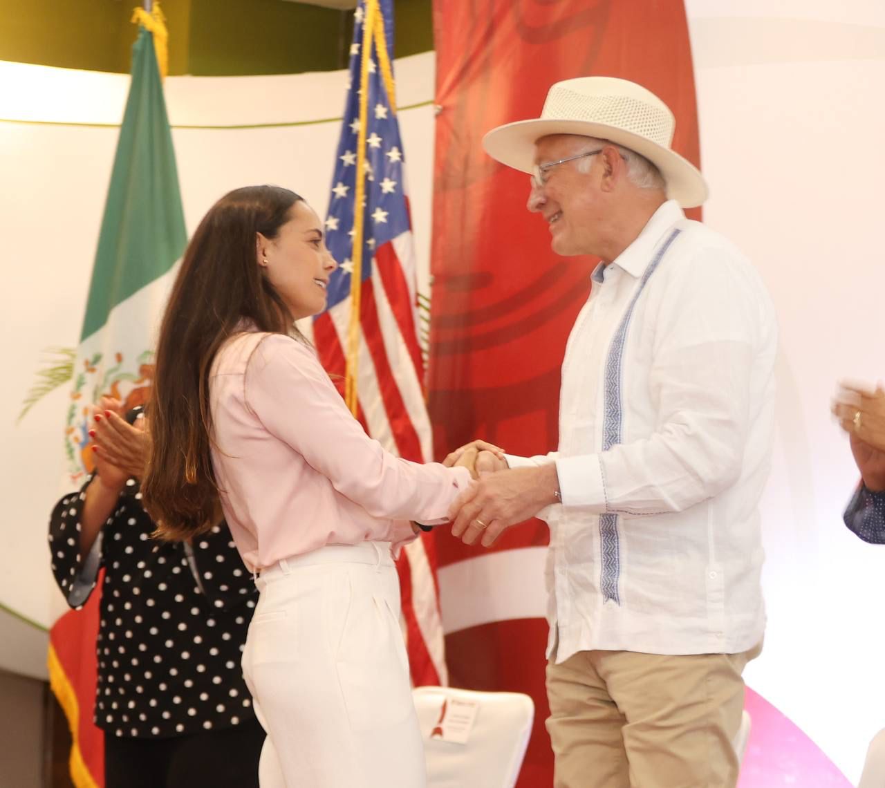 La Primera Autoridad Municipal, agradeció al Embajador de Estados Unidos en México, Ken Salazar; a la Cónsul General de la Embajada de Estados Unidos en la Península de Yucatán, Dorothy Ngutter; la Secretaria de Desarrollo Económico del Estado de Quintana Roo, Karla Almanza López; a la Oficina de Asuntos Educativos y Culturales (ECA) de Estados Unidos y la Academia para Emprendedoras (AWE), así como a representantes de las cámaras empresariales: CCE del Caribe, Amexme y Asociación de Hoteles, sin faltar el rector de la Universidad Politécnica de Quintana Roo (UPQROO), Manuel Pech, por ser atestiguar la entrega de reconocimientos a mujeres que a partir de hoy, redoblan su esfuerzo en el ámbito empresarial.