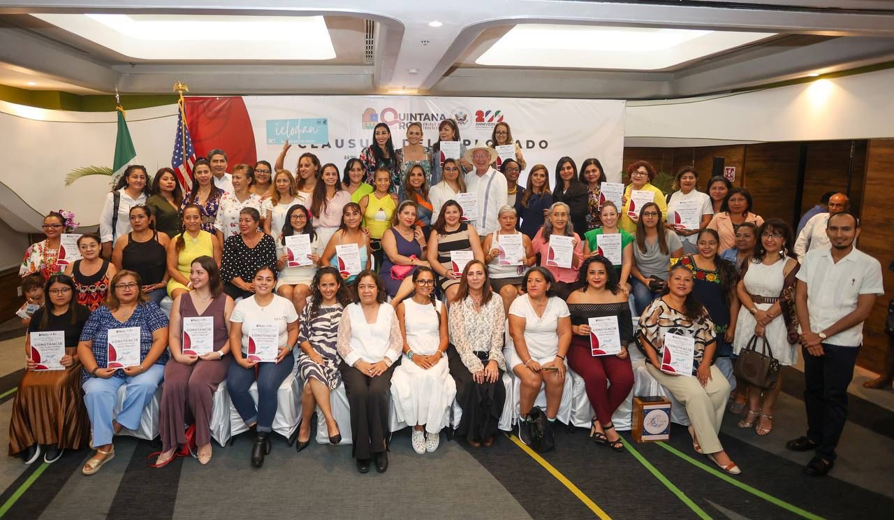 El diplomado impartido en ocho módulos tuvo una duración de cuatro meses, con el que se buscó impulsar y promover la nueva generación de empleos, por lo que destacó que en Cancún y Quintana Roo, se respalda el empoderamiento de las mujeres como principio fundamental de una sociedad con equidad de género, igualdad de oportunidades y derechos, bajo los lineamientos del Nuevo Acuerdo por el Bienestar y el Desarrollo de Quintana Roo, convocado por la Gobernadora, Mara Lezama, para tender puentes, reducir los rezagos y las brechas de desigualdad.