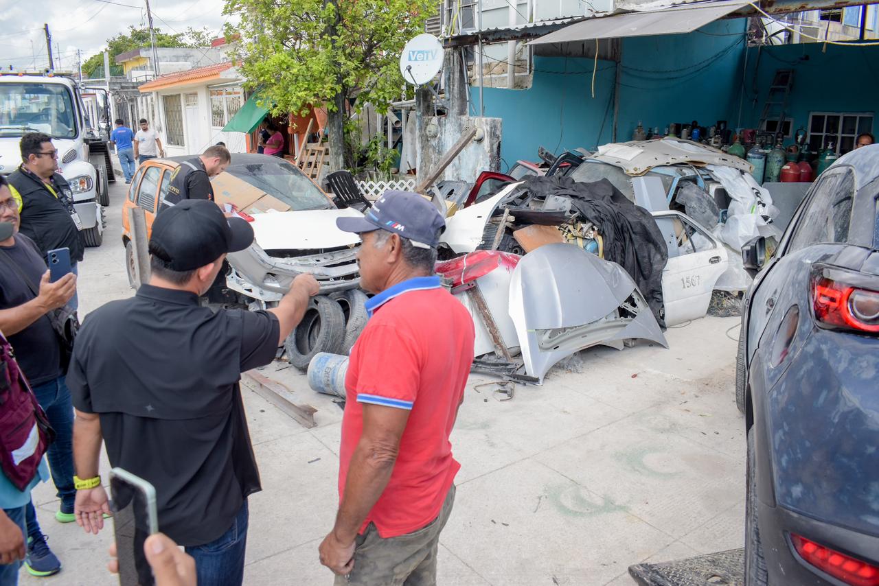 Cancún, Q. R., a 27 de marzo de 2026.- Por instrucciones de la Presidenta Municipal, Ana Paty Peralta, el secretario general del Ayuntamiento, Pablo Gutiérrez Fernández, encabezó un operativo interinstitucional en la Supermanzana 101, tras un reporte de vecinas y vecinos por vehículos abandonados, acumulación de chatarra y desechos que obstruían la vía pública.