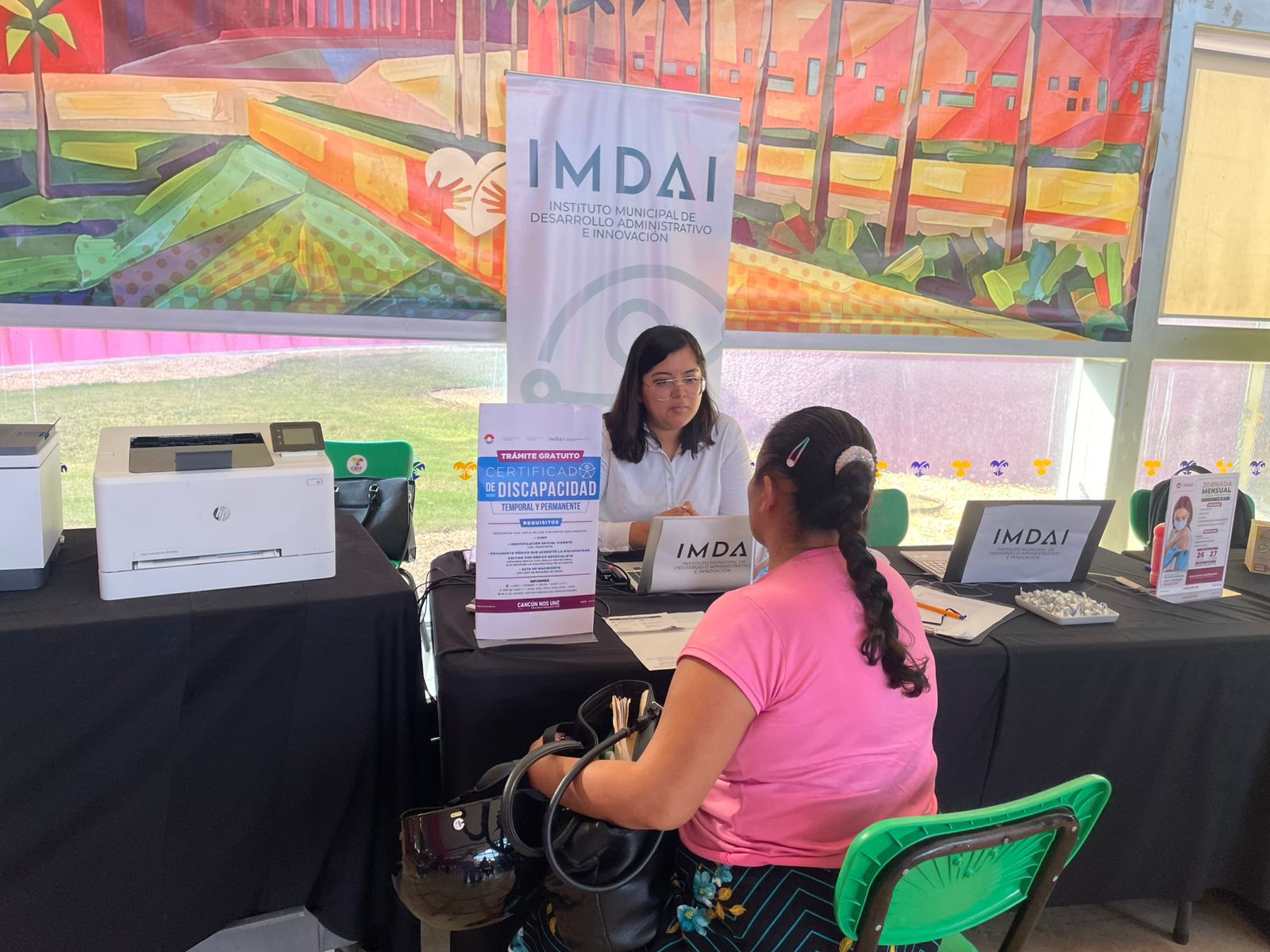 Cancún, Q. R., a 29 de marzo de 2026.- Ante el periodo de registro para recibir la Pensión para el Bienestar de las Personas con Discapacidad, proporcionada por el Gobierno de México, el Ayuntamiento de Benito Juárez atendió a los cancunenses interesados para la emisión del certificado gratuito de discapacidad temporal y permanente, a través de la Ventanilla Inclusiva del Instituto Municipal de Desarrollo Administrativo e Innovación (IMDAI) y módulos itinerantes de la misma dependencia.
