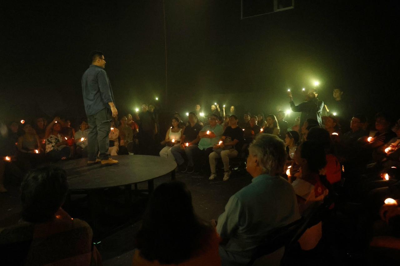 La noche de este viernes, la Caja Negra del Teatro de la Ciudad fue el espacio perfecto para que el público cancunense disfrutara de "Lux: Ecos del Fuego" con la participación de las Compañías Municipales de Coro, Teatro y Ballet Folclórico, quienes reuniendo su talento en torno a una historia creada por el multipremiado escenógrafo e iluminador Félix Arroyo, brindaron una experiencia única, donde la música, el movimiento y la actuación se fusionaron para dar voz y sentido a la luz como única protagonista.