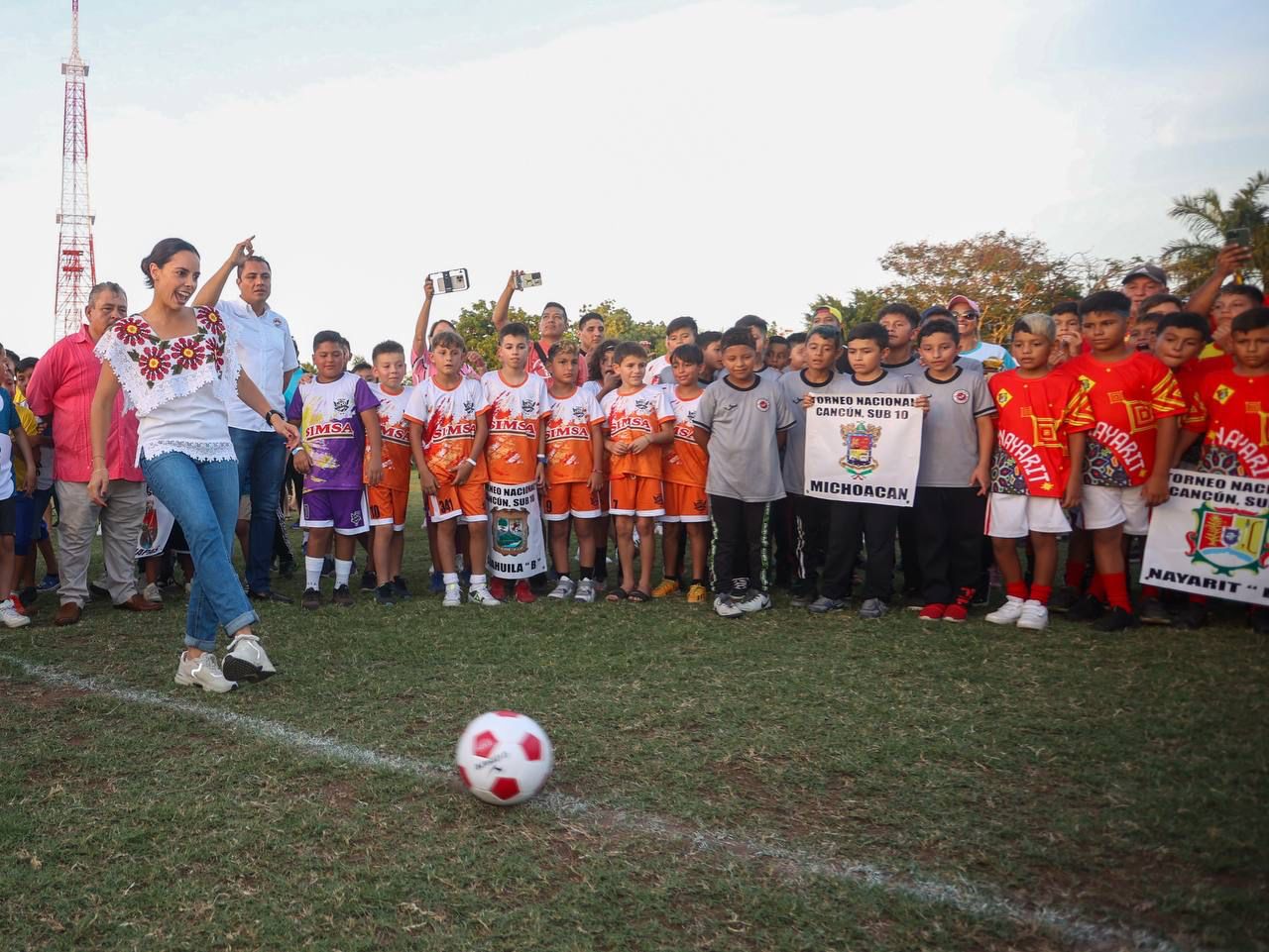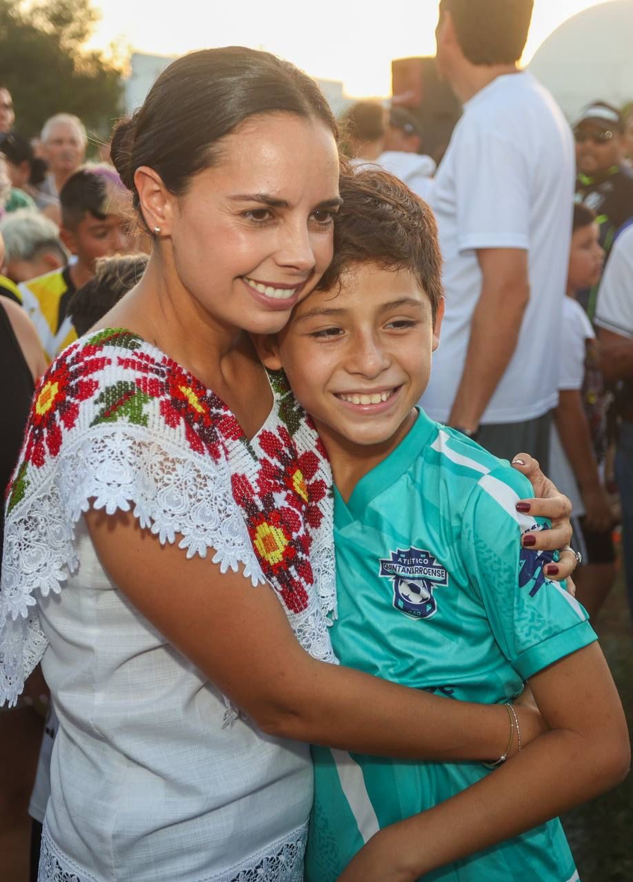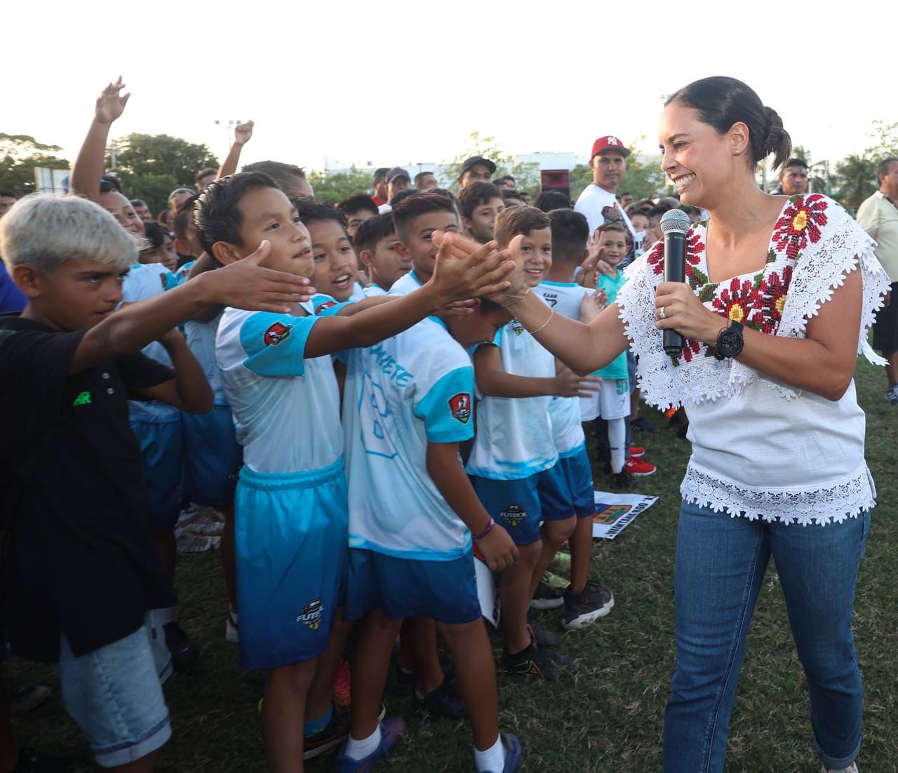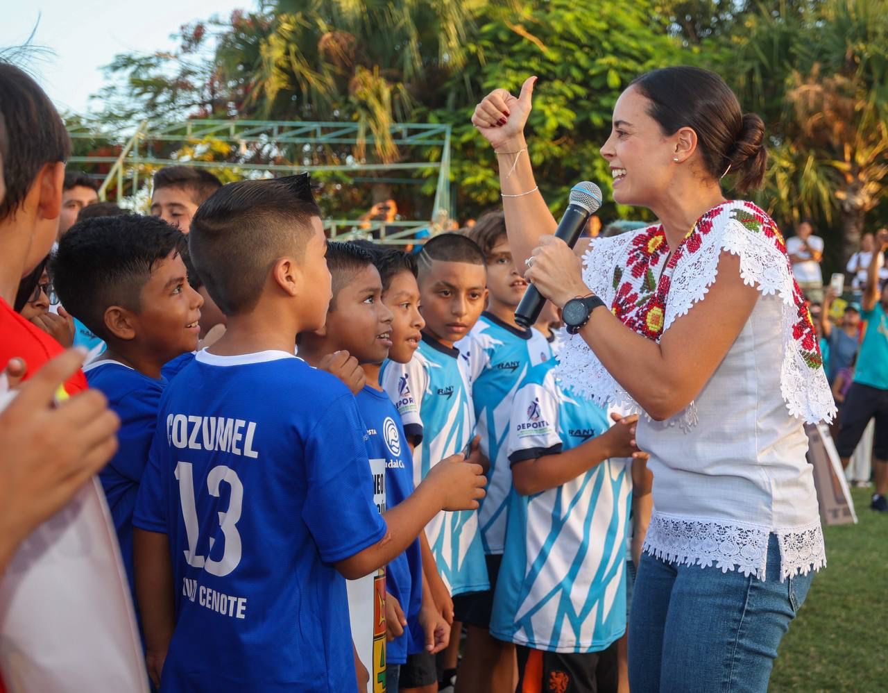 “Estoy muy feliz y emocionada de estar con ustedes en la inauguración del torneo, recibiendo en nuestra ciudad a pequeños deportistas de otras partes de México, sé que en estos días de fútbol van a dar lo máximo, yo solo les pido que disfruten mucho cada uno de los partidos. En Cancún es el año de las niñas y los niños, por ello le abrimos las puertas a estos eventos porque el deporte en nuestra ciudad es una prioridad, ya que nos ayuda a generar en las nuevas generaciones una cultura de paz y buenos hábitos”, expresó ante los deportistas, entrenadores y padres de familia que se encontraban emocionados en la unidad deportiva.