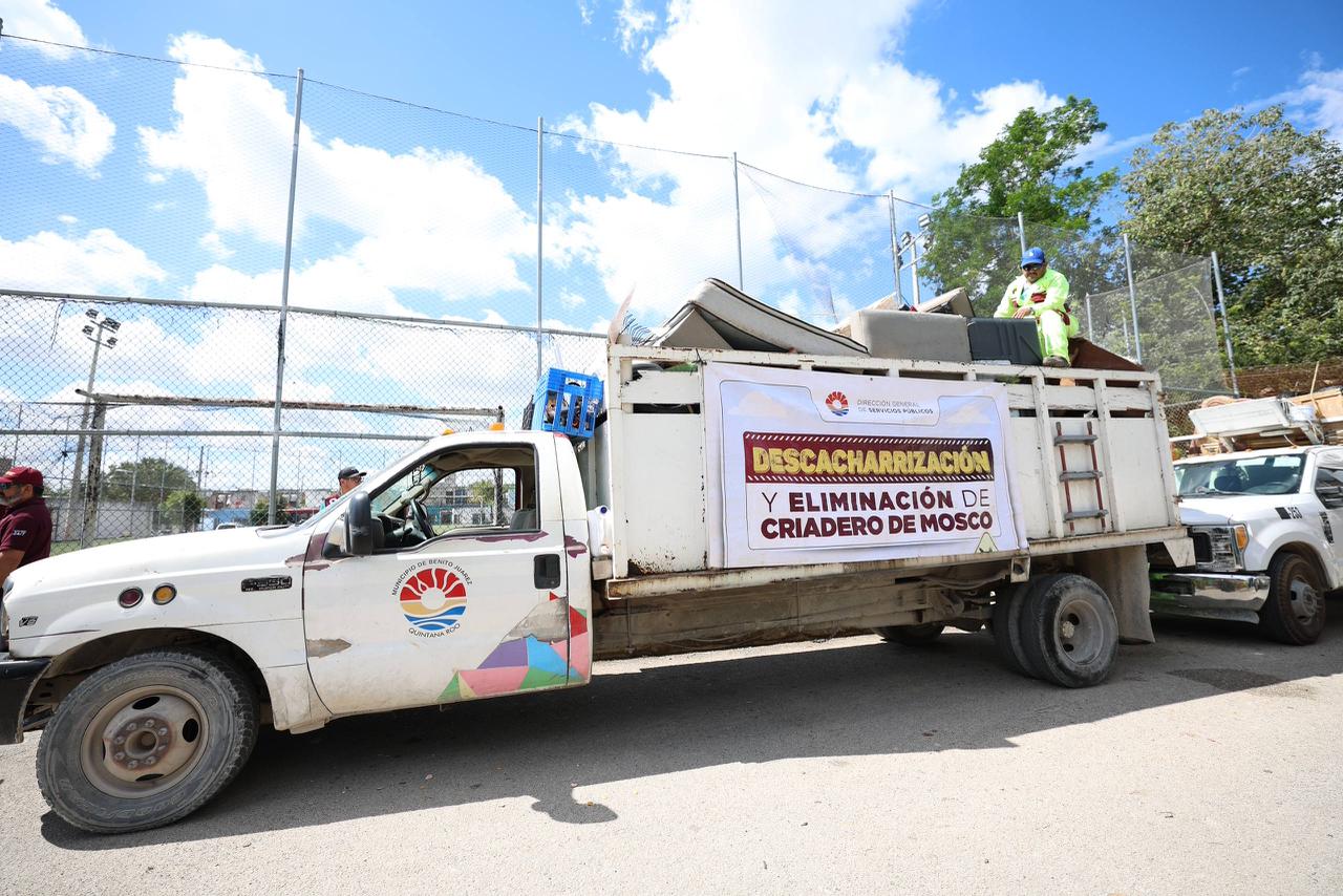 Con el director de dicha dependencia, Antonio de la Torre Chambé, la Primera Autoridad Municipal señaló que suman más de ocho mil reportes de descacharrización atendidos solamente en este año, de enero a la fecha, material que se lleva al relleno sanitario y a la celda, para procurar el cuidado a la salud de los cancunenses, al evitarse la proliferación de vectores que puedan causar enfermedades como dengue o zika, entre otras.