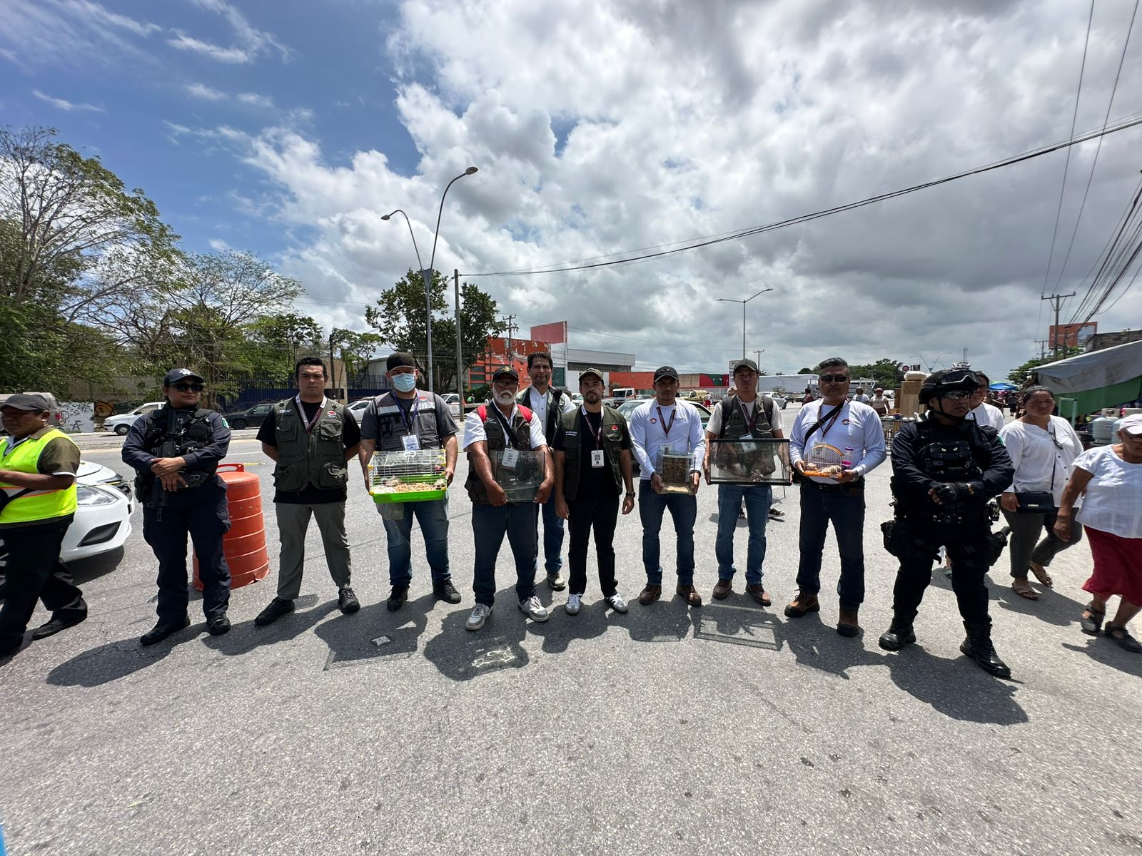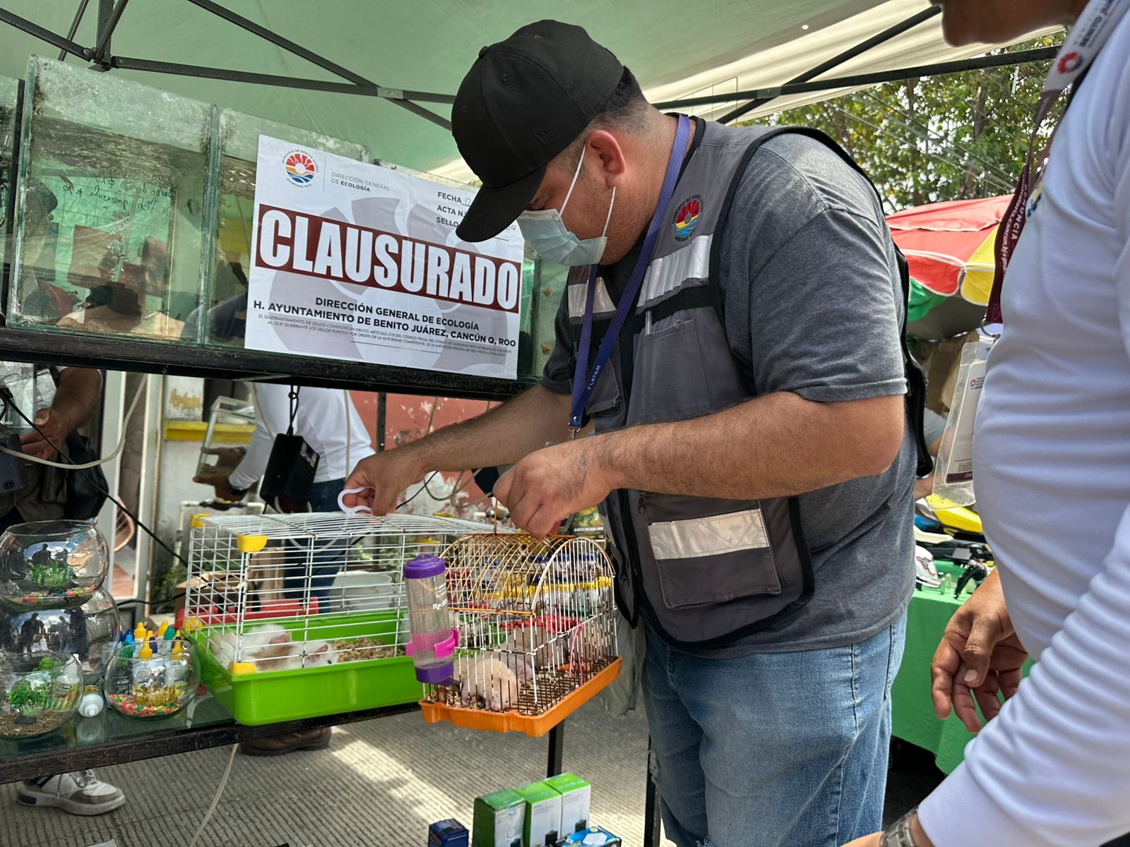 Cancún, Q. R., a 12 de abril de 2026.- Derivado de diversas denuncias ciudadanas sobre la presunta venta ilegal de animales, por instrucciones de la Presidenta Municipal, Ana Paty Peralta, el Ayuntamiento de Benito Juárez, a través de la Dirección General de Ecología, llevó a cabo un operativo coordinado en el tianguis de la Supermanzana 100, logrando el aseguramiento de diversas especies de fauna silvestre y exótica.