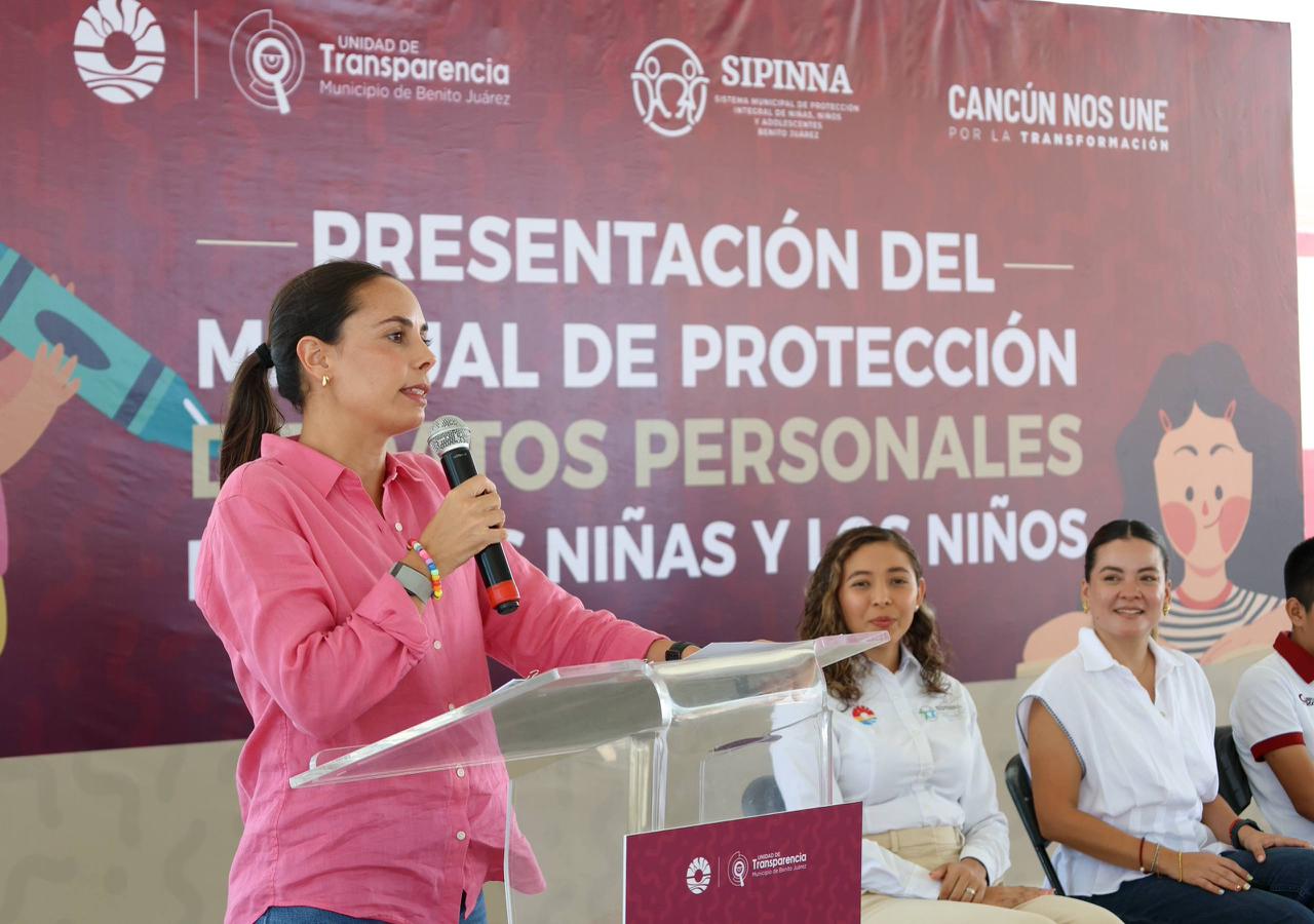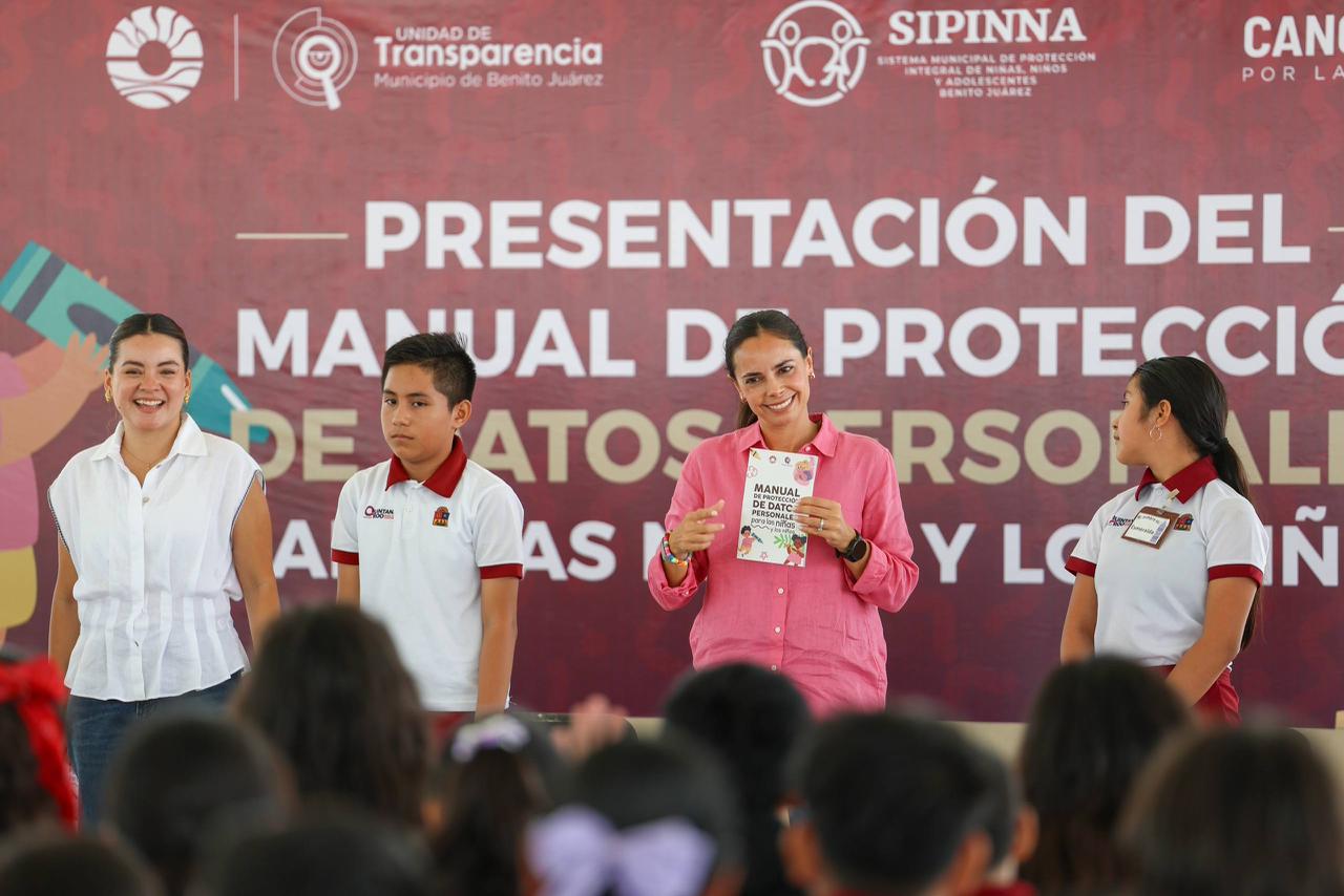Cancún, Q. R., a 21 de abril de 2026.- “Estamos aquí para cuidarlos, para protegerlos y para darles siempre todas las herramientas. Nuestra prioridad siempre es trabajar con las niñas, niños y adolescentes”, afirmó la Presidenta Municipal, Ana Paty Peralta, en la presentación y primera entrega del Manual de Protección de Datos Personales para las Niñas y Niños, que les permitirá a las nuevas generaciones comprender el uso responsable de la tecnología y la prevención de riesgos digitales.